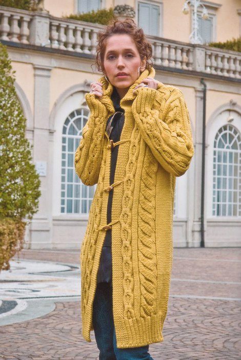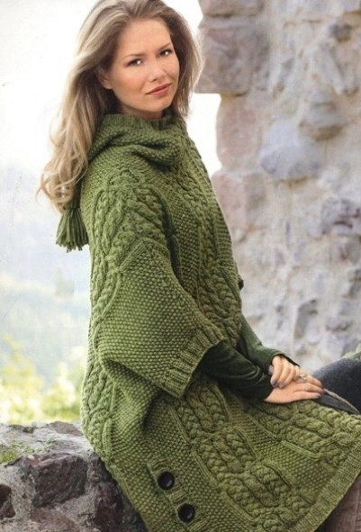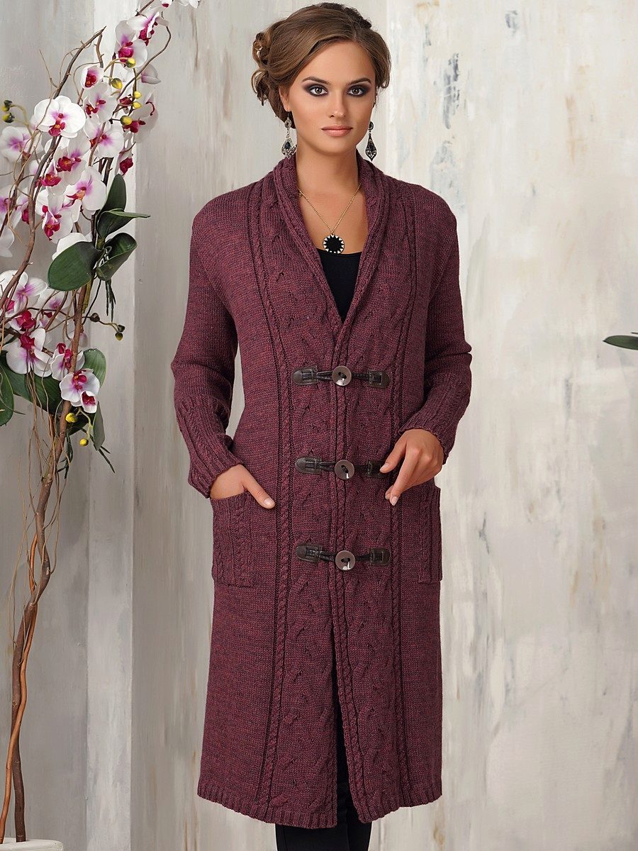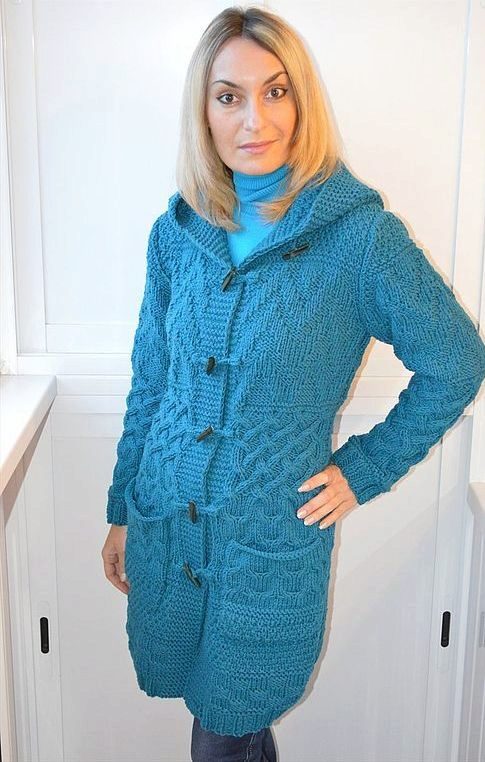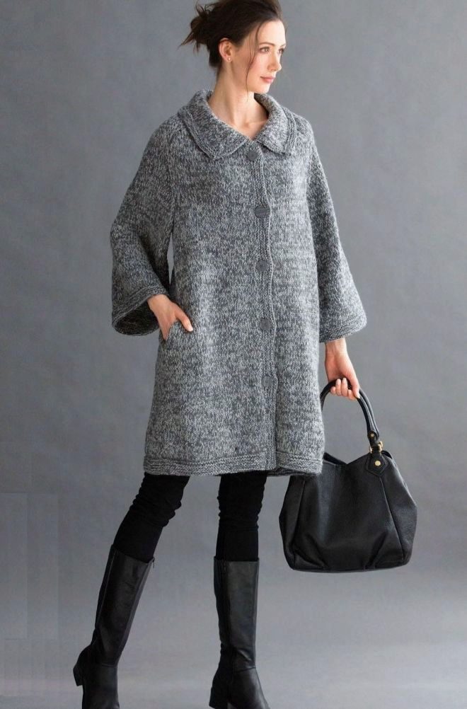 Knitted coats according to the knitting method are divided into two types: knitted by hand or on a knitting machine (individual or industrial version). Handmade products are knitted in various ways using tools: the most common ones are a hook (regular or Tunisian) and knitting needles, less well-known are a fork, a ruler (Peruvian knitting), tenerife, that is, a frame with pins (knitting individual motifs).