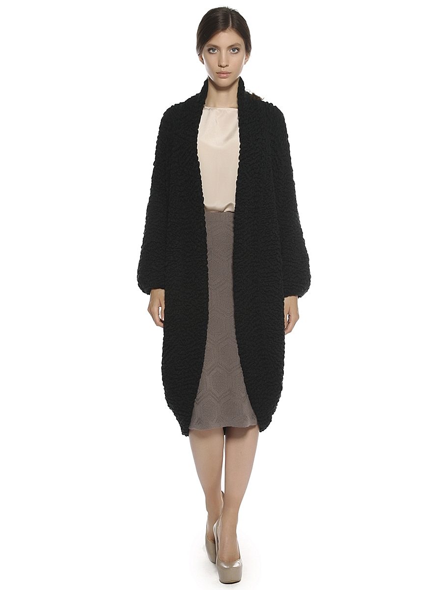 A competently selected model of a knitted coat will help complete women to correct figure flaws and shift the accents to smooth feminine lines. Fluffy ladies most suitable loose coat trapezoid silhouette or coat-capes. Drawing is best to choose a smooth and vertical.
