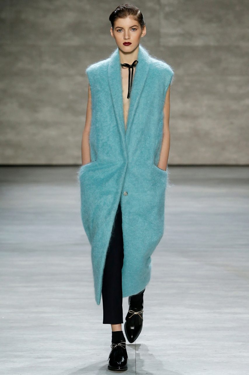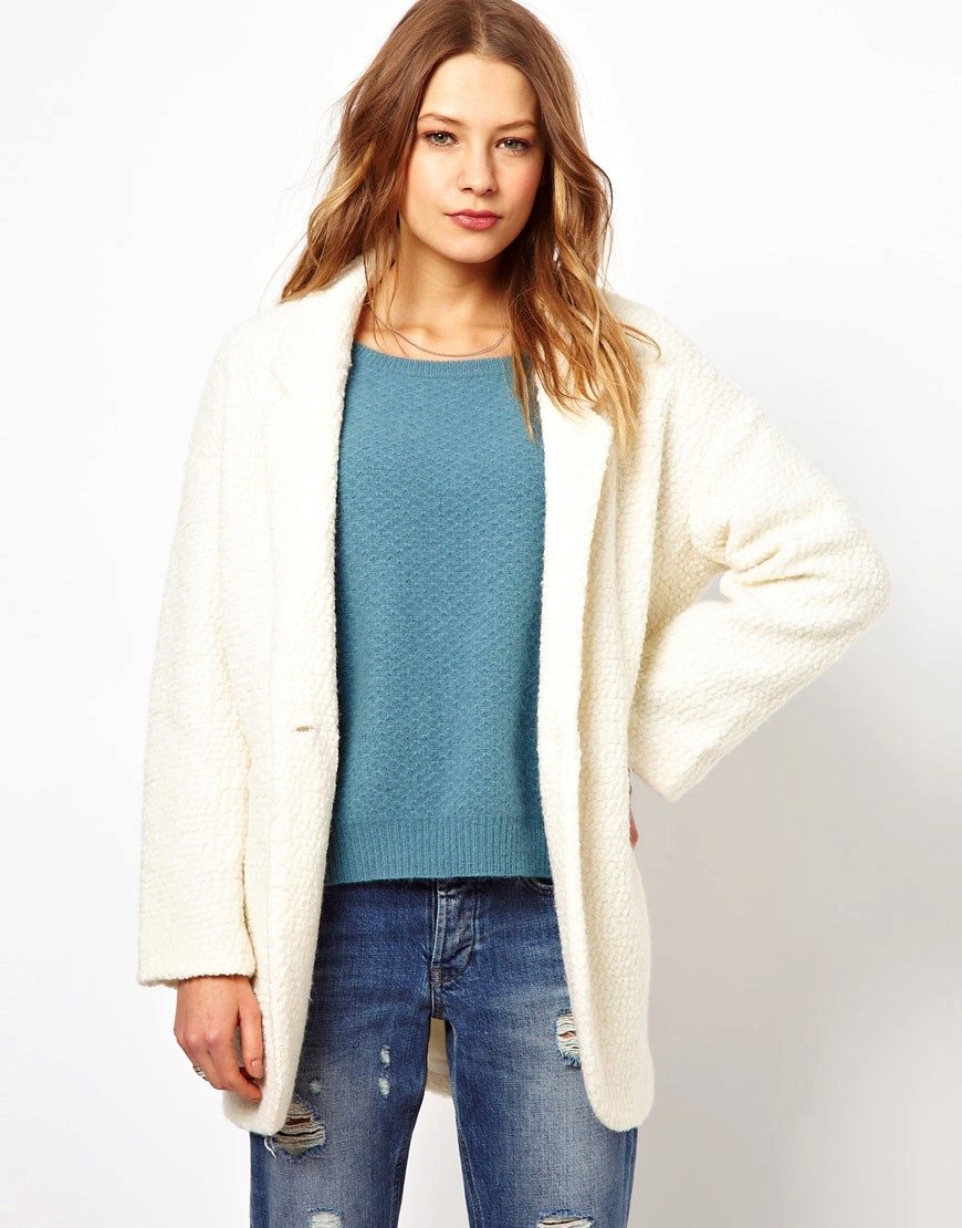 - Fancy texture yarn or coat with three-dimensional patterns require a combination with things of simple cut in order to avoid overloading.