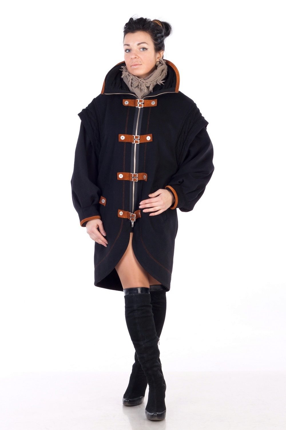 - Poncho coat Effective style, extravagant cut, increased functionality and just a trendy stylish thing. Complemented by a belt and a hood, it will become not only a good protection from the cold, but also one of your favorite items of your warm wardrobe.