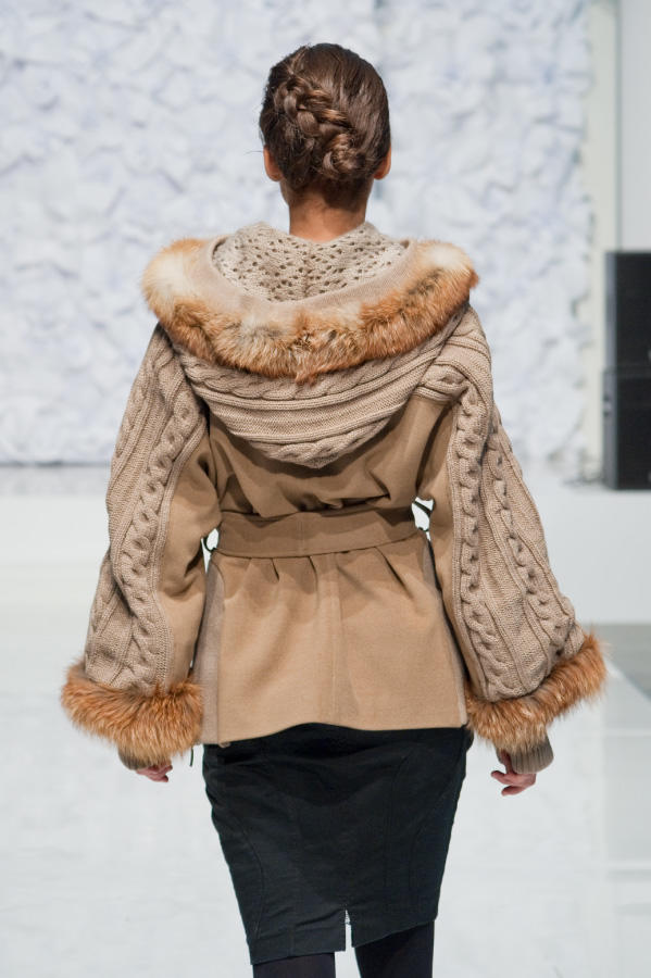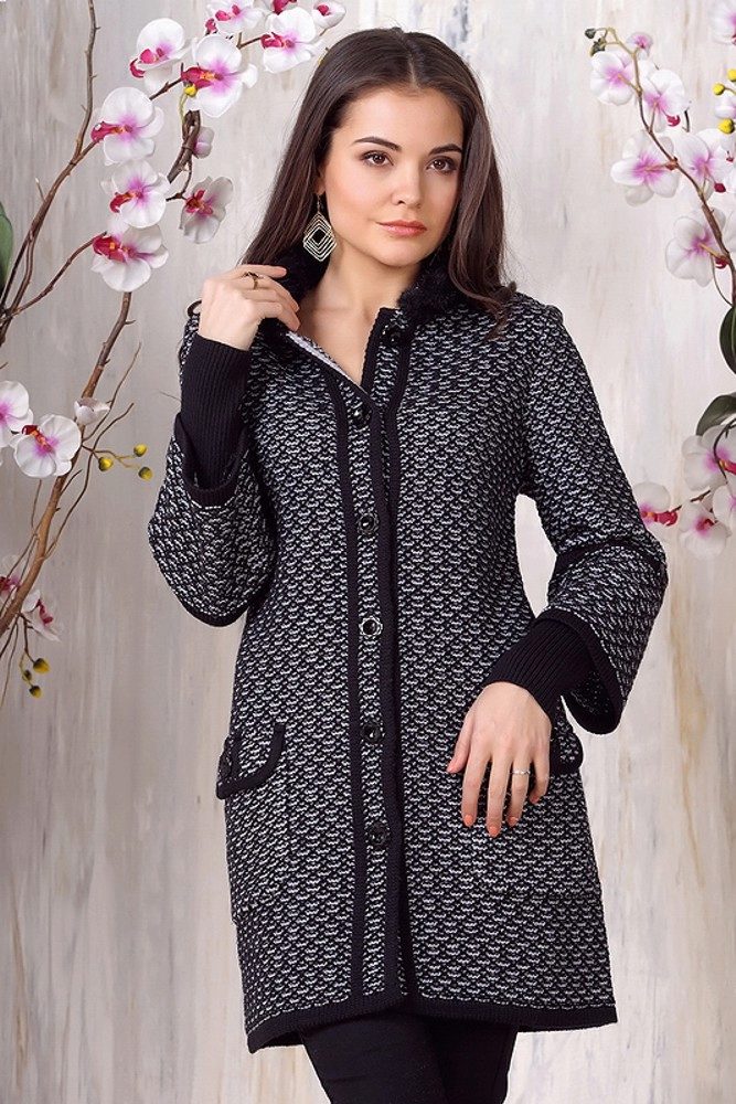 - Knitted coat with fur very quickly gained recognition in everyday life and ceased to be the prerogative of the podiums. Fur is good in itself, but as a trim for pockets, a hood or a collar of a knitted coat, it will add a touch of unobtrusive luxury to your look.