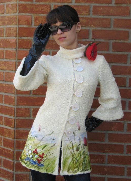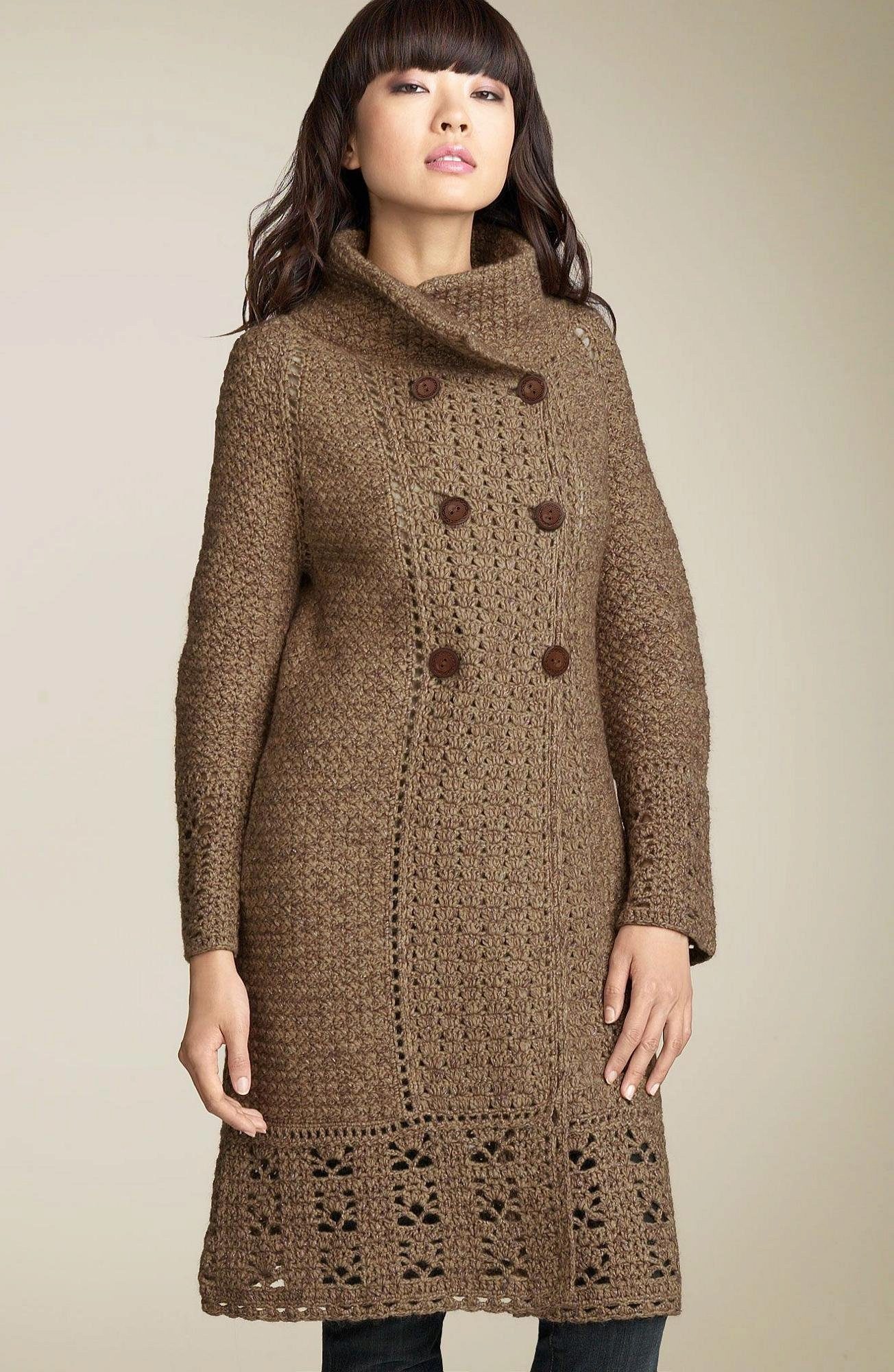 Coats of drape or cashmere with sewn on the sleeves or on the hem of braids and arans are also popular. Lace crochet panels on a summer coat will add a touch of piquancy to your look.