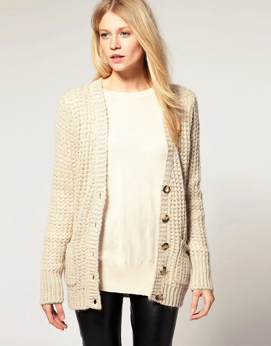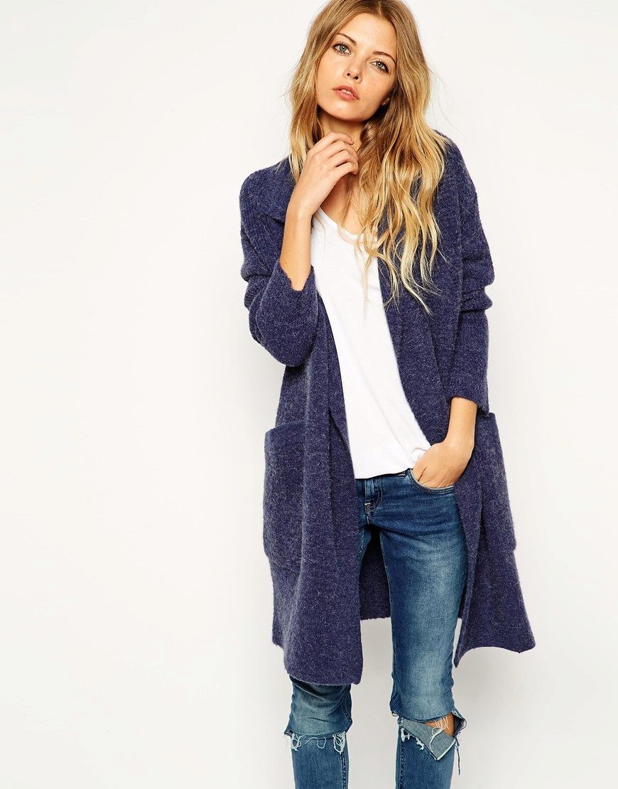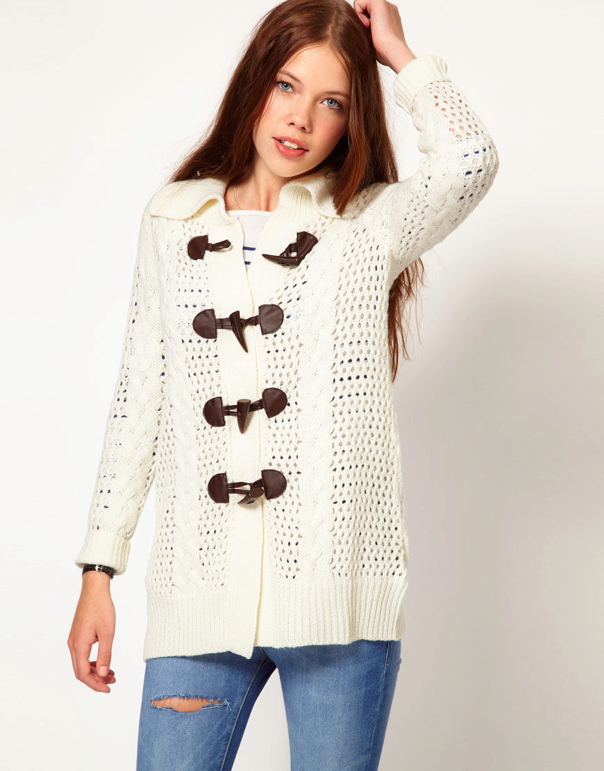 - Sweater coat A cropped casual knit model that looks like an elongated cardigan.