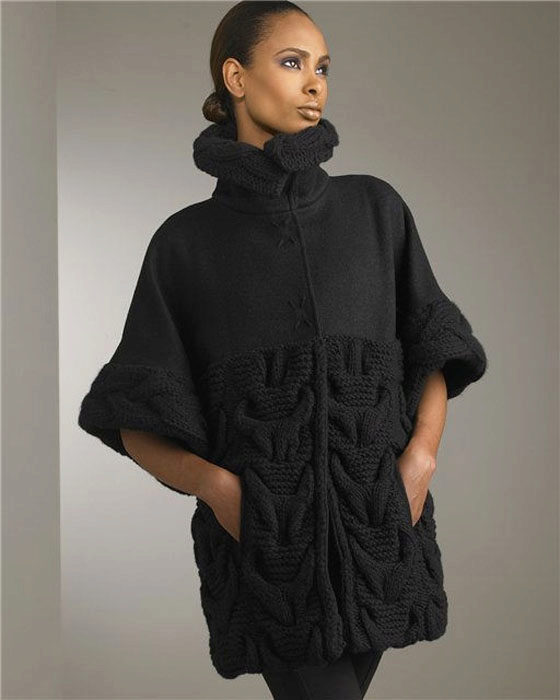 - Cape Coats, the style of which is often confused with the style of the poncho, in contrast to which the cap is tailored to the figure. In the cape you will be not only original, but also unusually elegant.