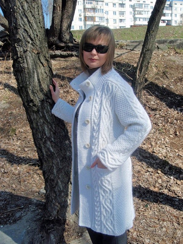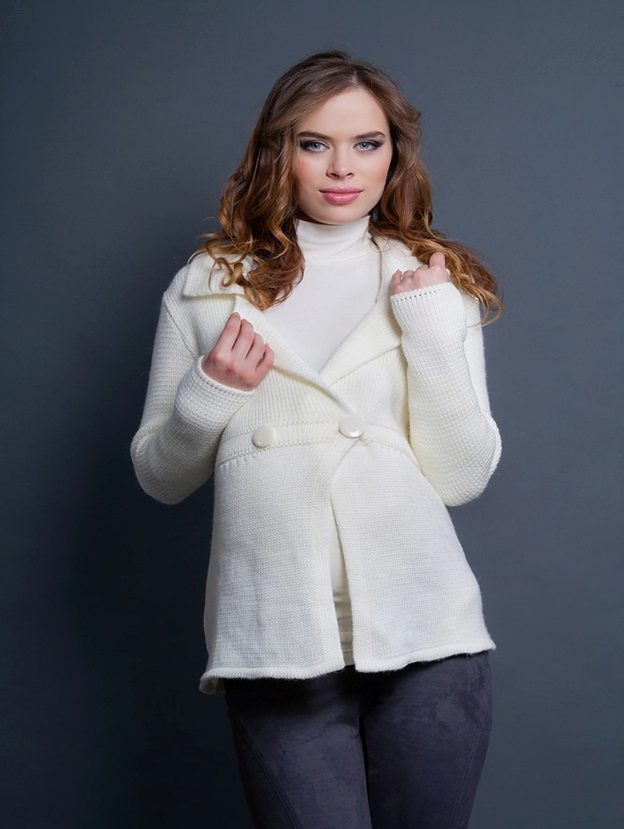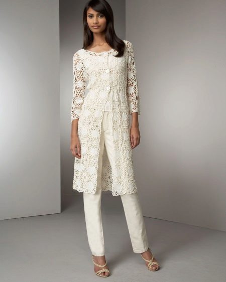 The snow-white knitted coat is chic, proven for decades. Knitted summer white openwork coat will create the impression of exquisite lightness.