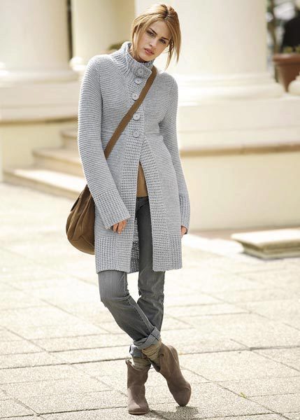 A pregnant woman needs special comfort and cozy sensations. Happy future moms are especially suited for soft knitted coats made of natural yarn of free style or with a high waist.