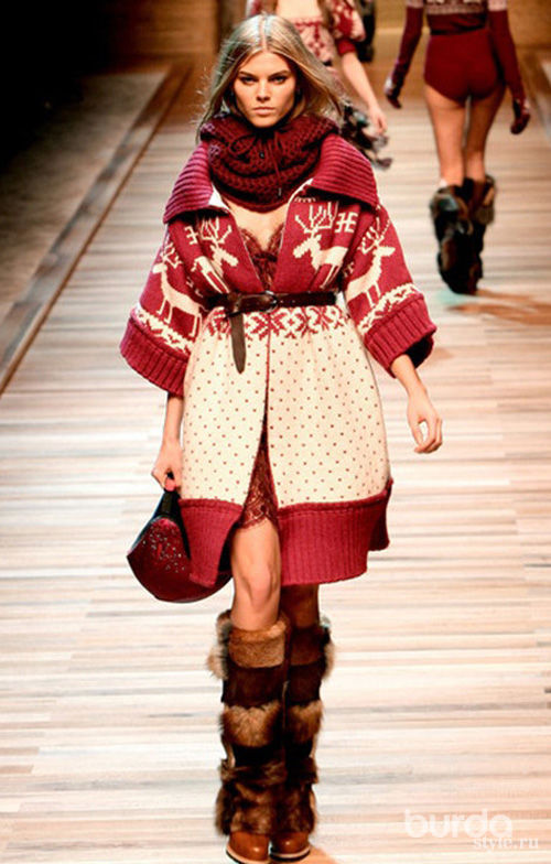 - D. Dolce and S. Gabbana were honored with Scandinavian patterns, with which they decorated their collection of knitted coats.