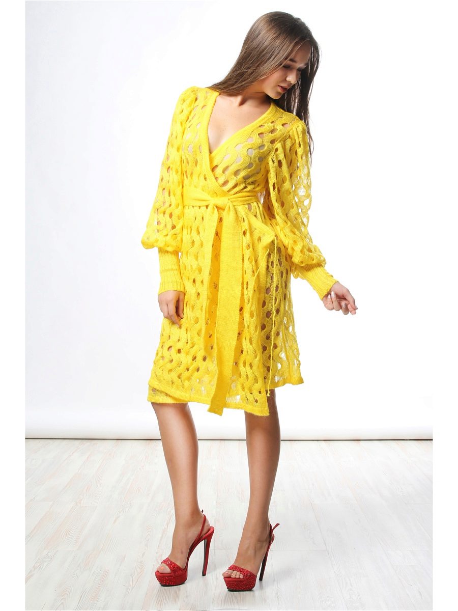 The material from which the knitted coat is created can also be very diverse. This knitted knitwear for everyday comfort, which does not require special care, and fluffy types of yarn are cool “grass” for summer and weightless, but very warm and elegant modern silk mohair for a cooler season, which will require attention and care, but will reward you beauty and comfort. Products from a bled yarn look very impressive.
