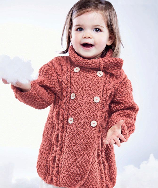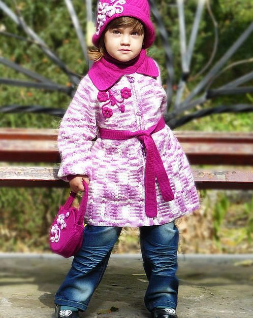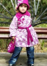 Girls like to wear knitted coats, as they do not hinder movement, do not crumple, have bright colors and colorful decorative elements. We are talking about knitted models for the smallest and most energetic fashionistas. Models for teens are more stylish performance and restrained character. The colors can also be bright, but without “frivolousness”, as in coat models for girls of 1, 2 or 3 years. On the surface of the model may be different patterns.