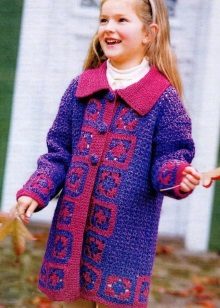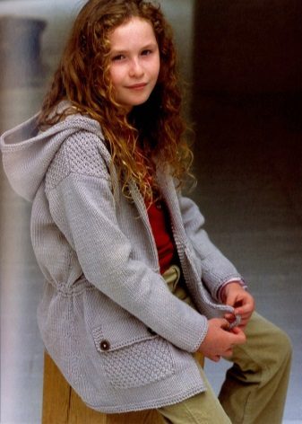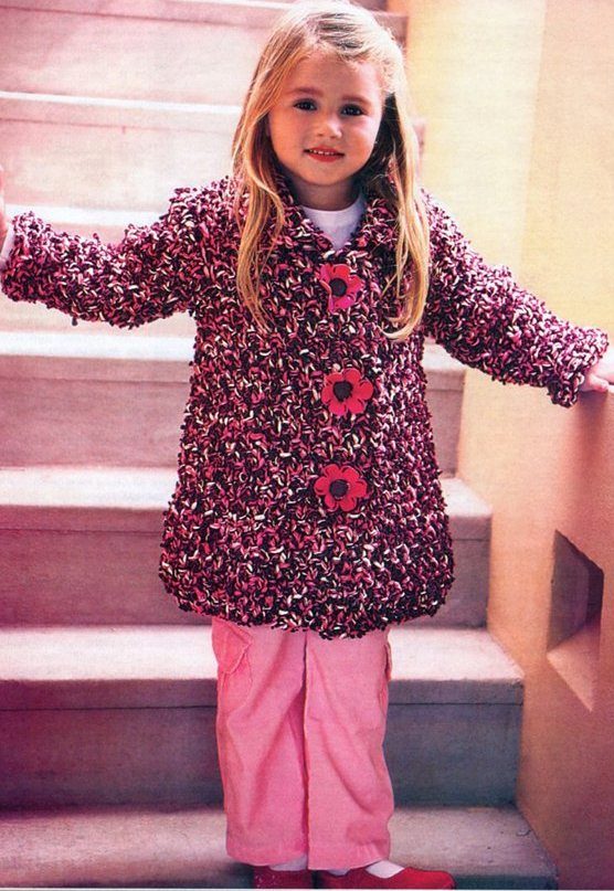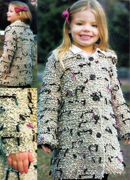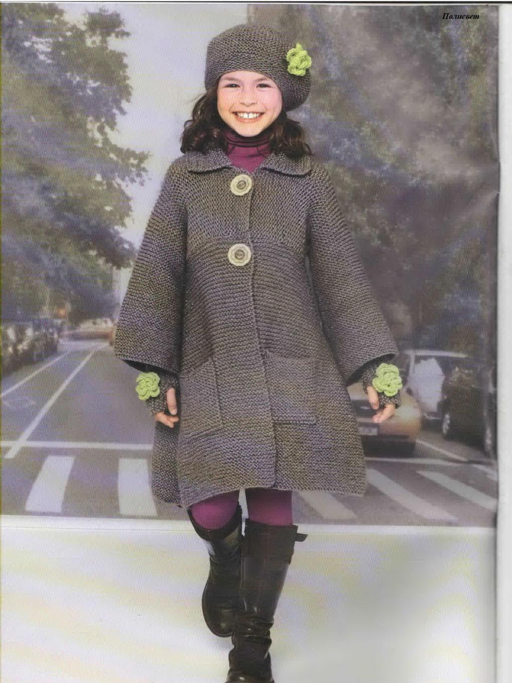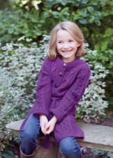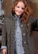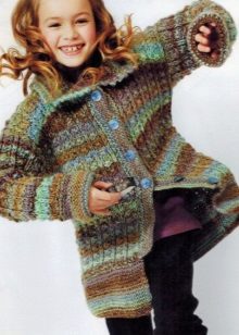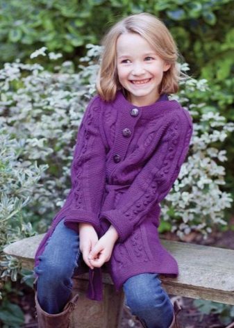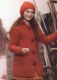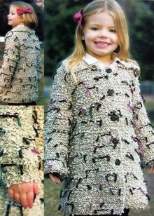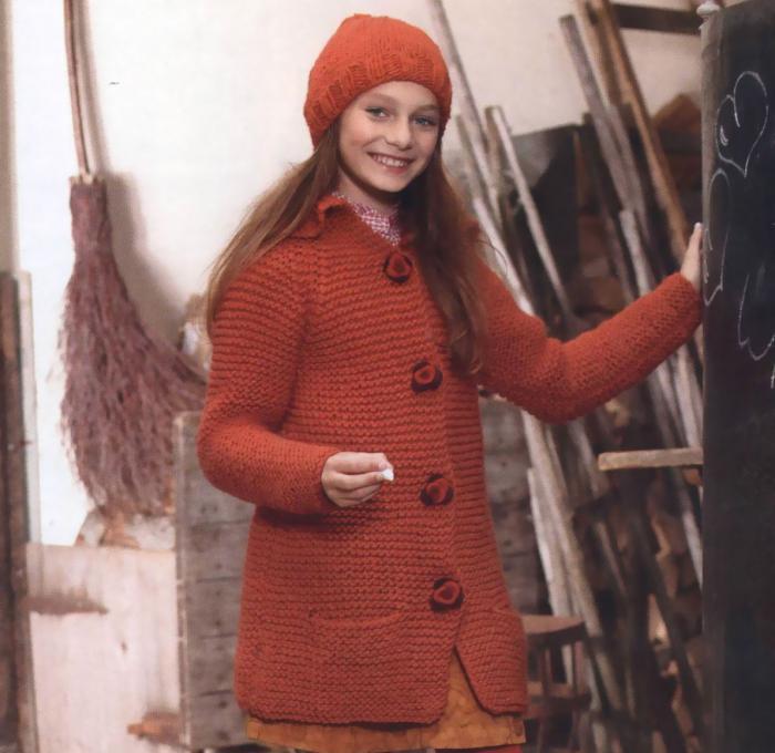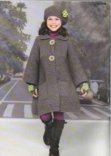 Teenagers dictate their terms. Here, ordinary knitting is indispensable. A girl of 10-12 years will make a lot of demands on such a model. For a young fashionista (turning into a girl) it is important how she will look in the eyes of her friends. Here is a competition. Therefore, when choosing a model of a knitted coat in this case, it is better to give preference not to flowers and ruffles, but to the length, the degree of the silhouette's silhouette, the color of the product, the pattern on it.