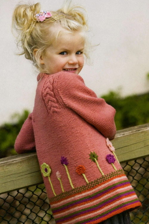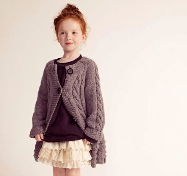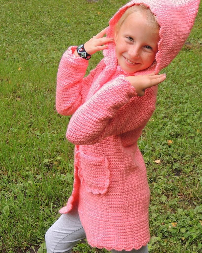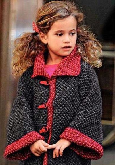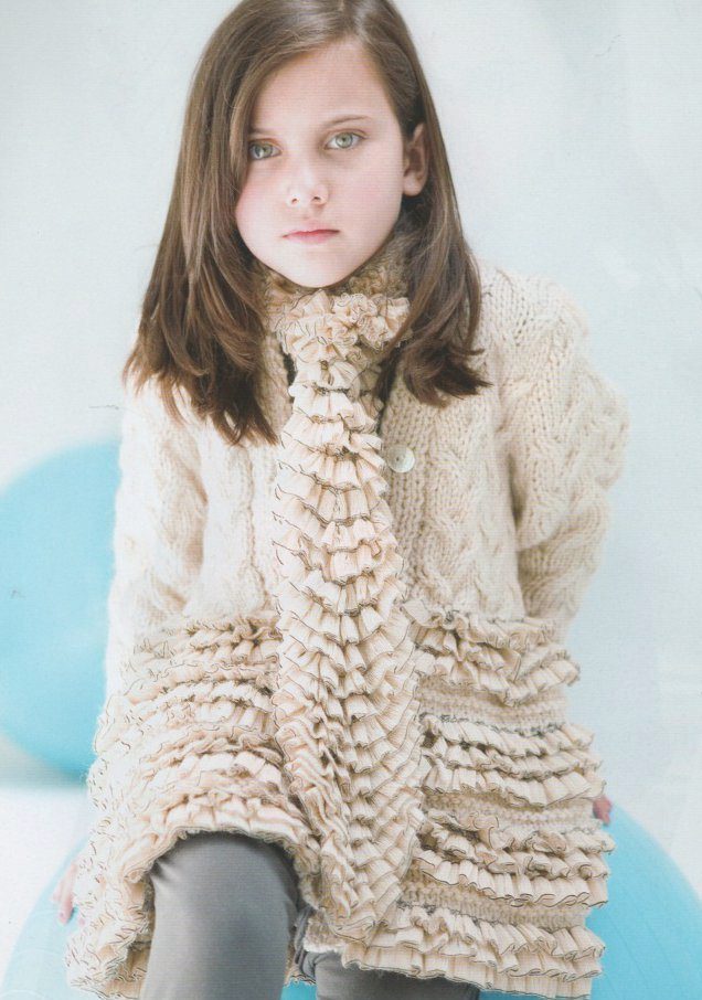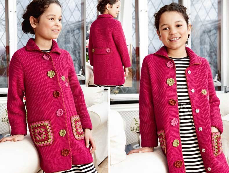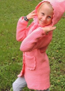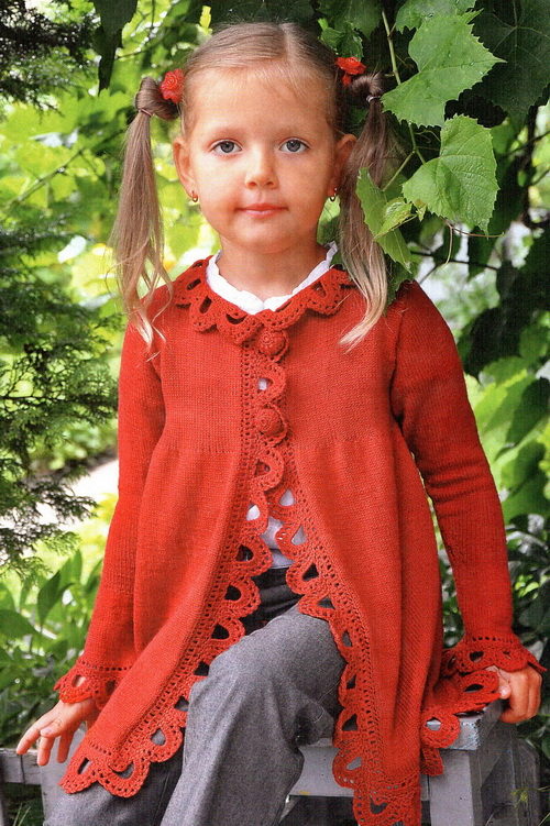 Teenagers dictate their terms. Here, ordinary knitting is indispensable. A girl of 10-12 years will make a lot of demands on such a model. For a young fashionista (turning into a girl) it is important how she will look in the eyes of her friends. Here is a competition. Therefore, when choosing a model of a knitted coat in this case, it is better to give preference not to flowers and ruffles, but to the length, the degree of the silhouette's silhouette, the color of the product, the pattern on it.