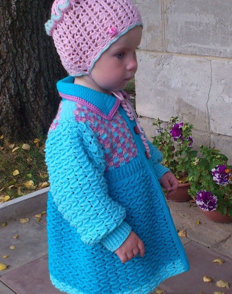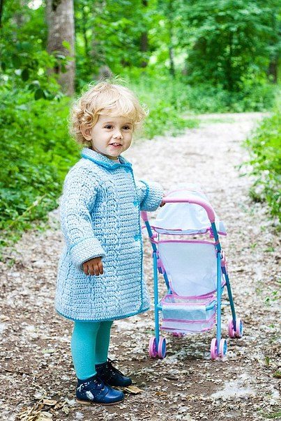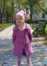 A model of a knitted coat can be made of medium-density threads and seated on a lining for extra strength. This will allow to keep the coat for a long time. Too thick yarn does not look good. Thick mating immediately catches the eye, moreover, such a product is not easy to call. Why does the child have additional load? In addition, too thick yarn - even with a lining - will still begin to sag under its own weight. We'll have to constantly adjust the lining, and this already leads to additional deformation of the product.