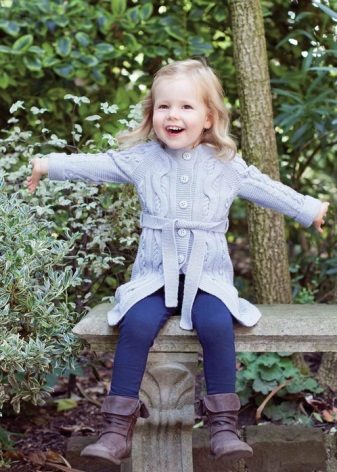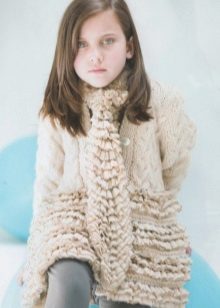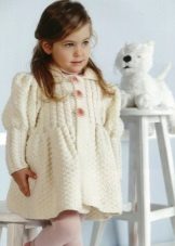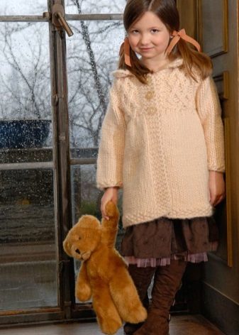 How elegant can be the image of a girl wearing a knitted coat? It turns out that for a spectacular image with a children's coat, such characteristics are also relevant. An interesting, bold, in its own way “adult” onion with a knitted coat of a creamy shade will certainly please the girl, even if she is used to wearing clothes of bright colors.