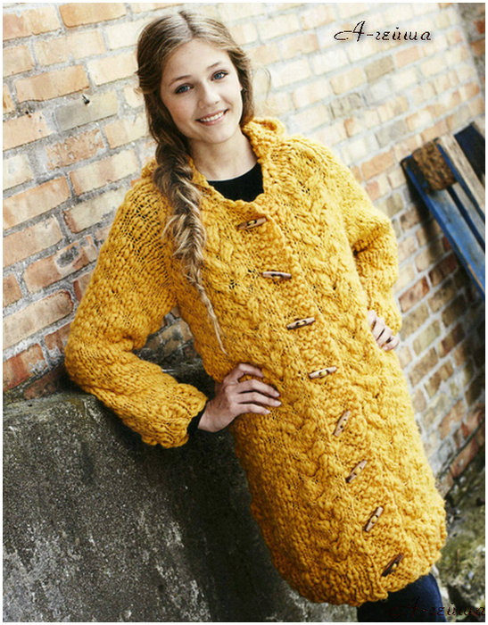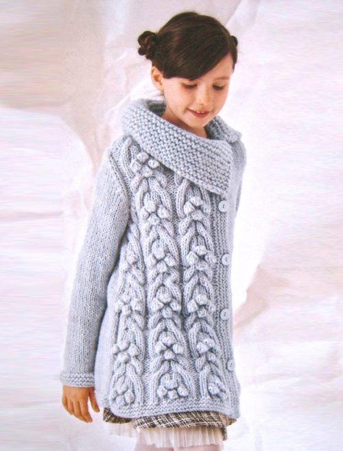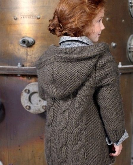 Knitted coat models for girls differ in a variety of styles, knitting density, specificity of execution. This is neither a cardigan nor a jacket.