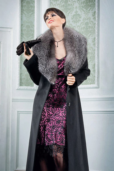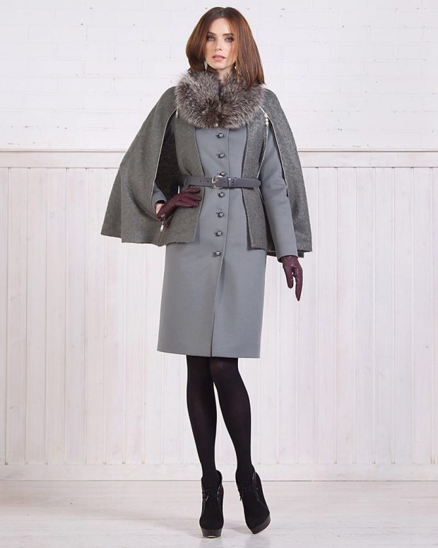 Some models of cap coats and capes as well as sleeveless coats did not go without fur trimming, but often the fur from the collar extends directly to the lapels, shoulders and sleeves. Especially luxurious is a coat with a smell, since the collar is most often large on them and goes down almost to the waist.