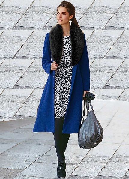 Tight-fitting trousers and jeans, high boots, jackboots, and high-heeled boots will suit shorter models. Skirts and dresses are best combined with long products, while the edge of the skirt should not be visible from under the coat more than ten centimeters. For a coat of length to the knee, both pencil skirts of the same length and jeans are suitable, and shoes are best to choose with heels.