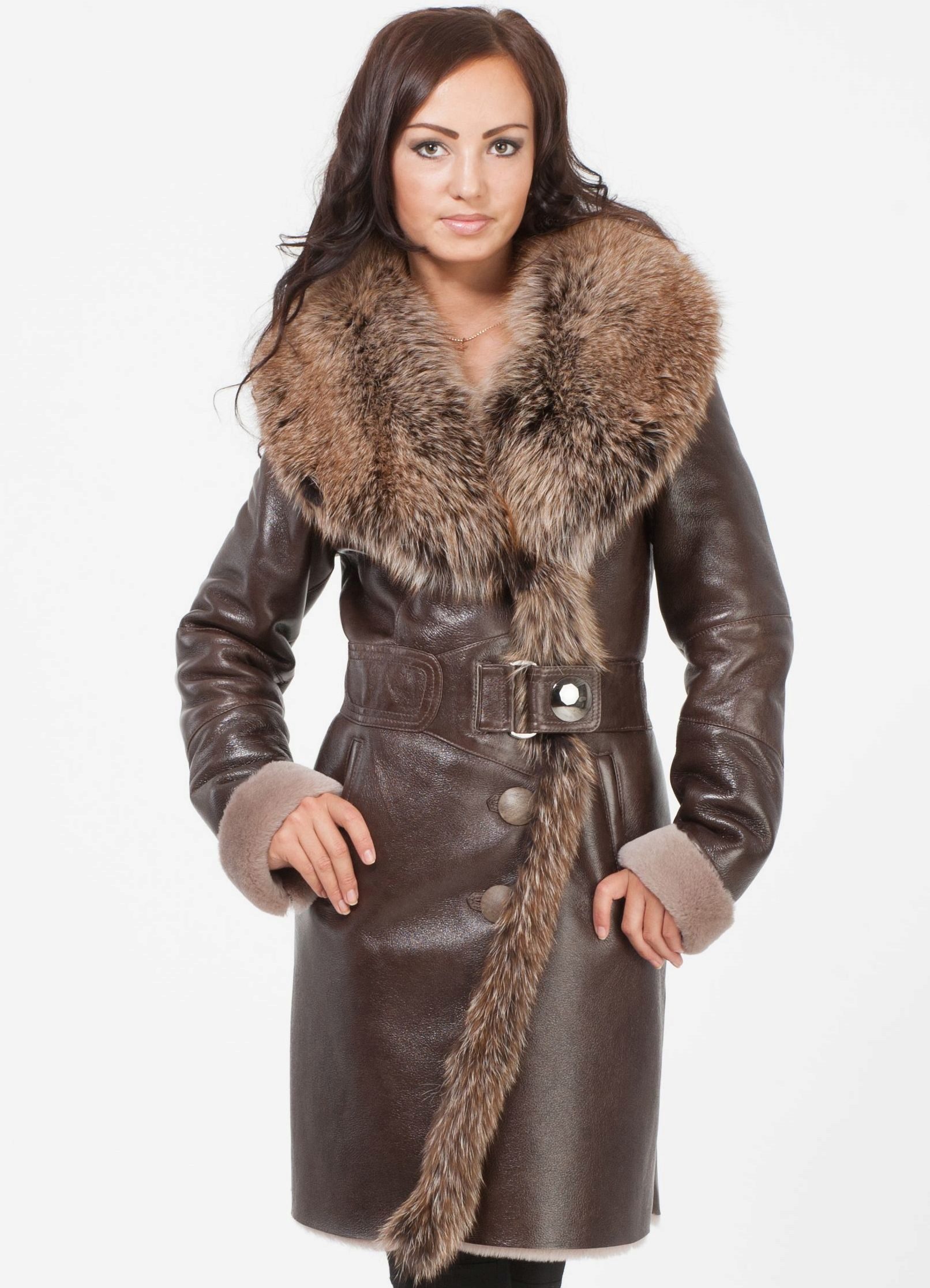 Leather or suede coats, which can be called a sheepskin coat, is also now at the peak of popularity. It is much warmer than a fur coat, well protected from cold and wind, very comfortable and practical. Perhaps the only drawback of the sheepskin coat is that it is rather heavy, therefore it is not suitable for those who are used to leading an active lifestyle.