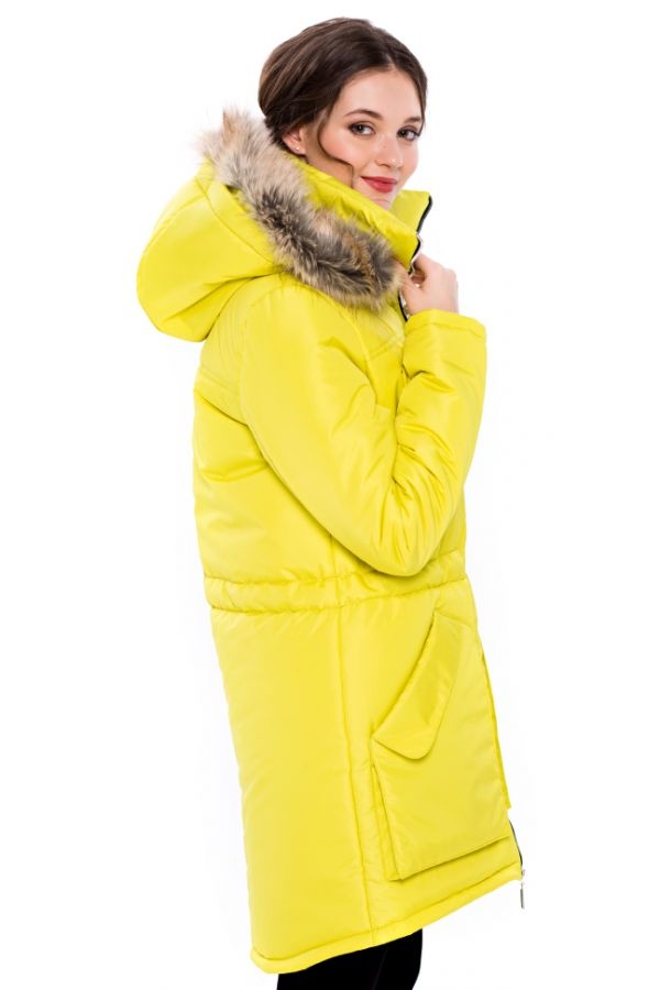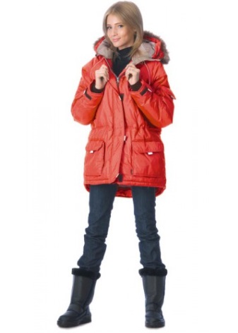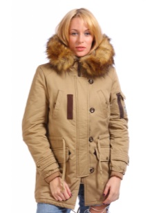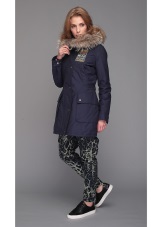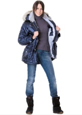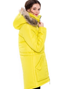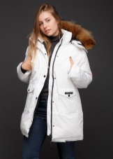 - the classic version of the jacket has a fitted cut, a standard length to mid-thigh and a hood with fur, which, if desired, can be easily unfastened;