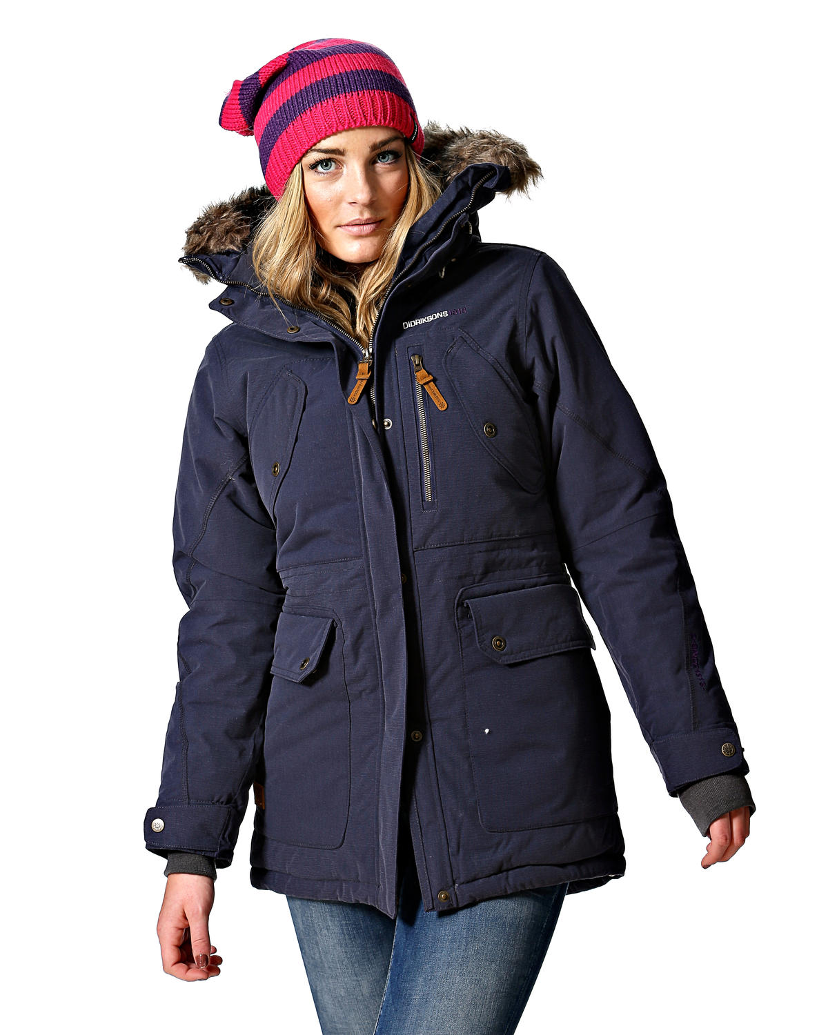 - Buttons, zippers and buckles on the surface of the jacket and attaching the fur to the hood should have a brilliant texture and smooth rounded edges;