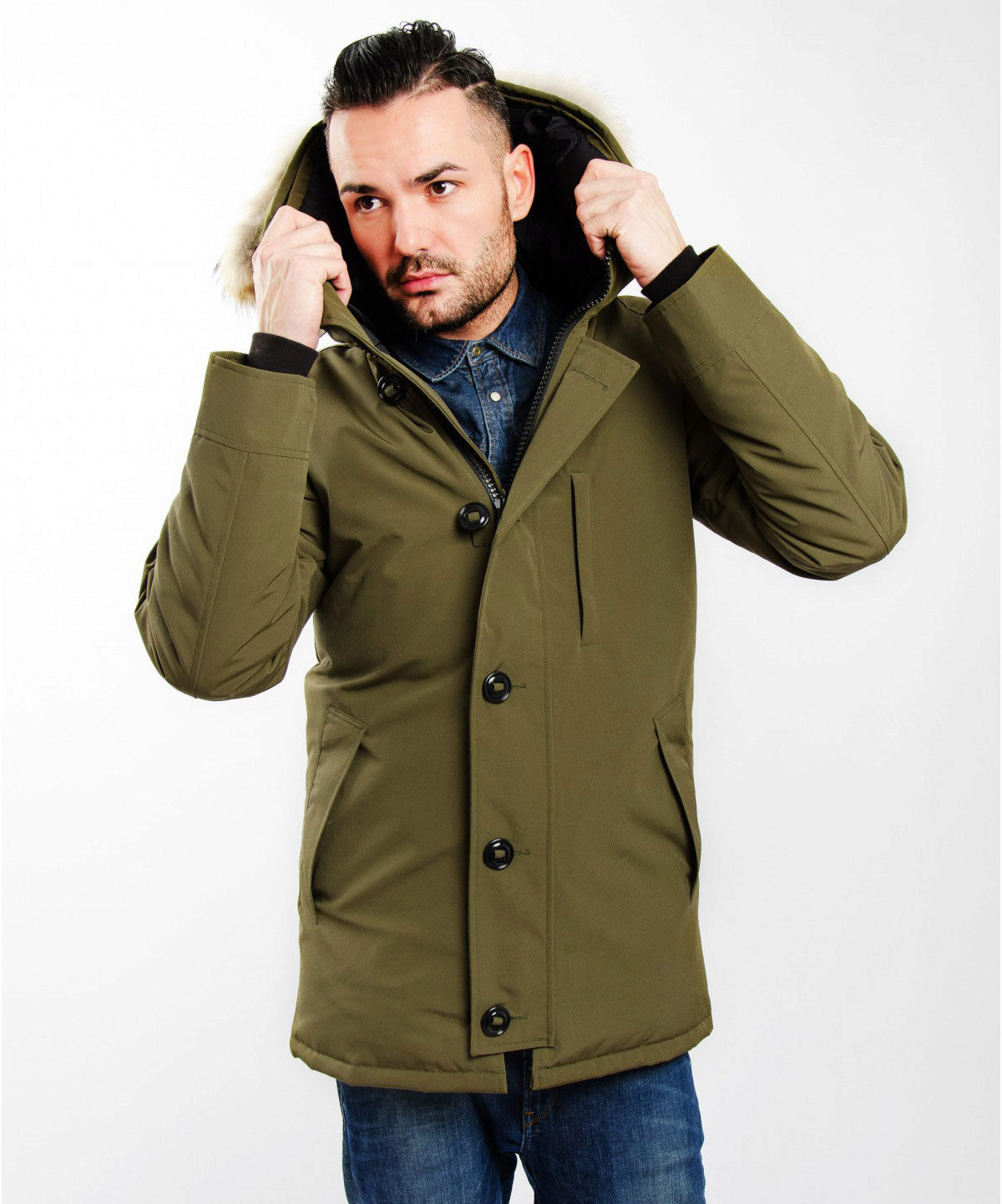 - Analogue Canada Goose Expedition parka, designed specifically for urban environments - Citadel Parka. Pooh in this model is less than the previous one, so the silhouette is not so voluminous. Details - a chest pocket on a flypaper with a company logo, capacious lower pockets, sufficient on volume for a tablet or the electronic book, lower pockets on a lightning, a powerful lightning which can be fastened even in warm gloves.