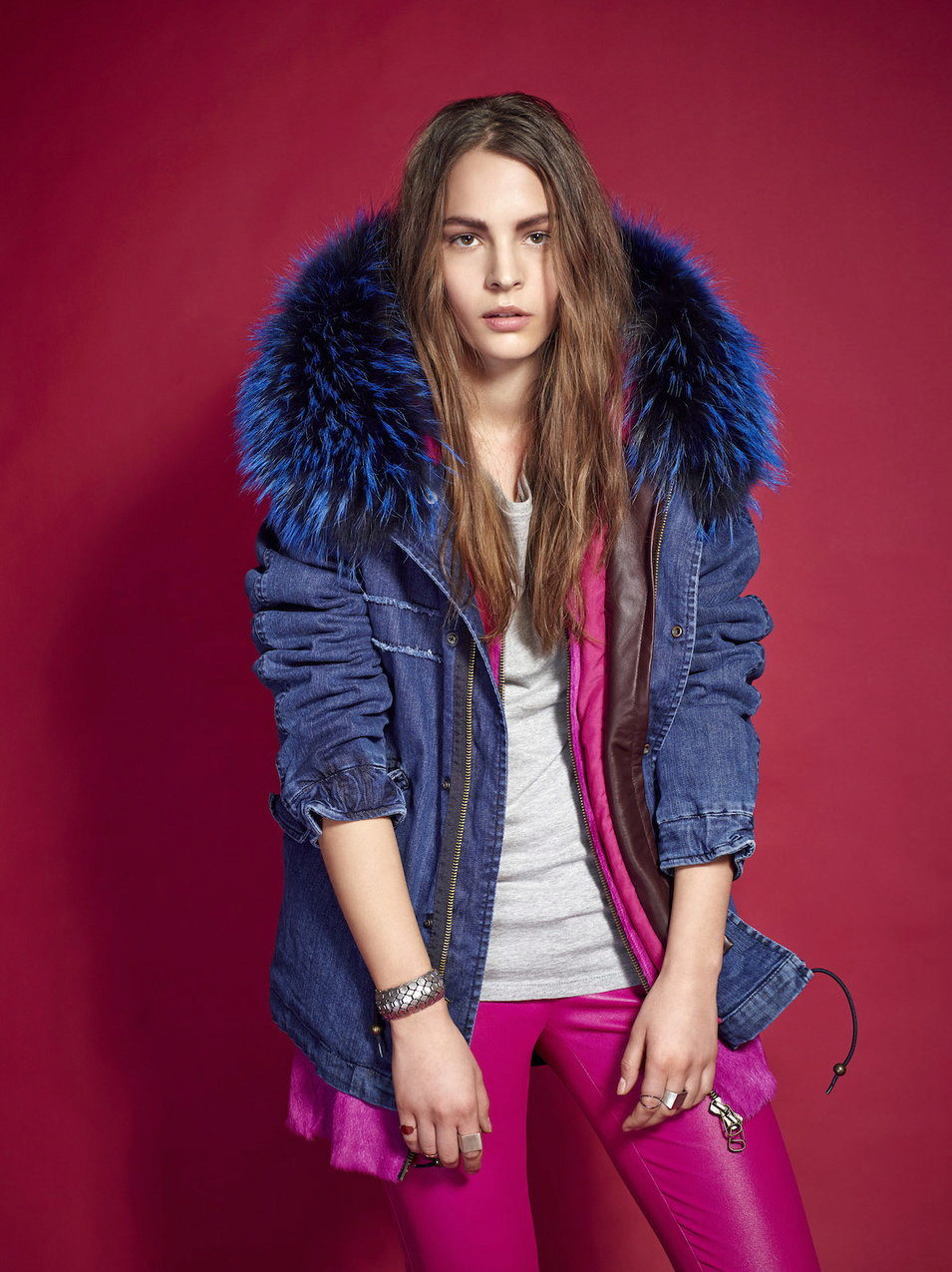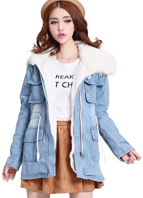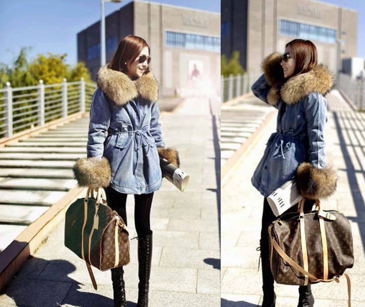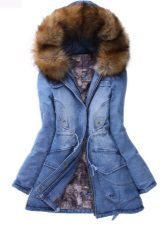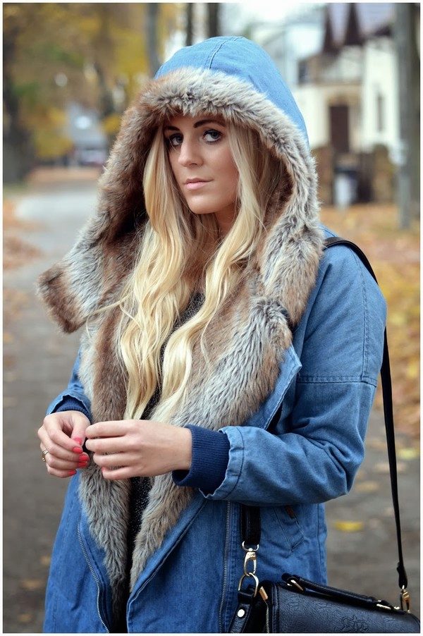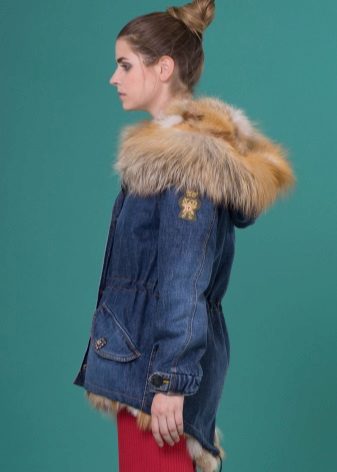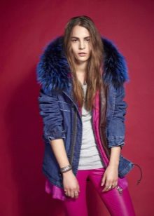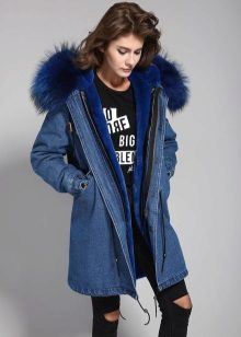 Although denim is an inexpensive youth material, the natural fur trim is able to add an element of luxury to the look. Fur can act as a heater inside the jacket, as well as serve as a trim hood and cuffs. If you plan to wear a denim park for several seasons, then you should choose faux fur, which will not fall down and become salted. Another option is natural, but with high wear resistance (sheepskin or raccoon). For example, rabbit fur will look sloppy after a couple of seasons, and your jacket will lose its presentable appearance.