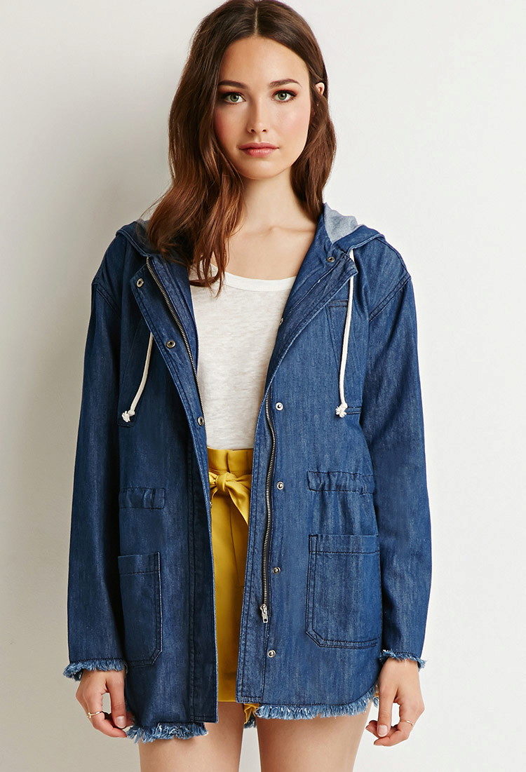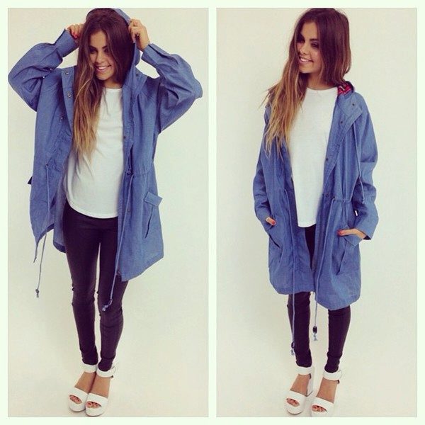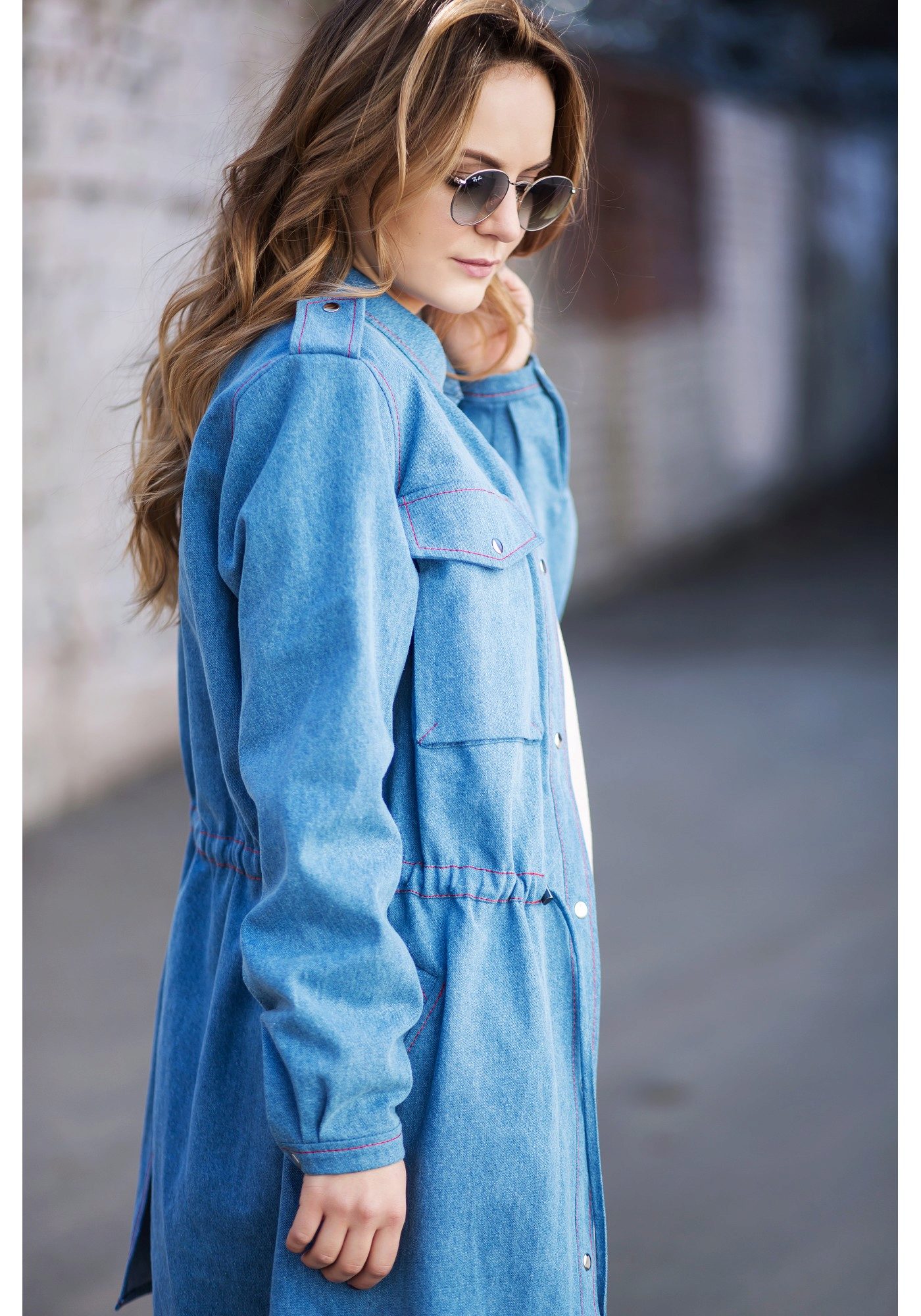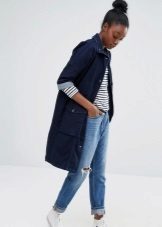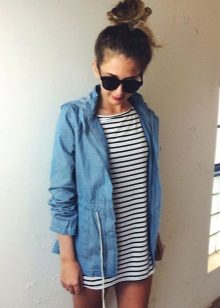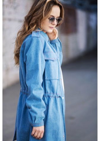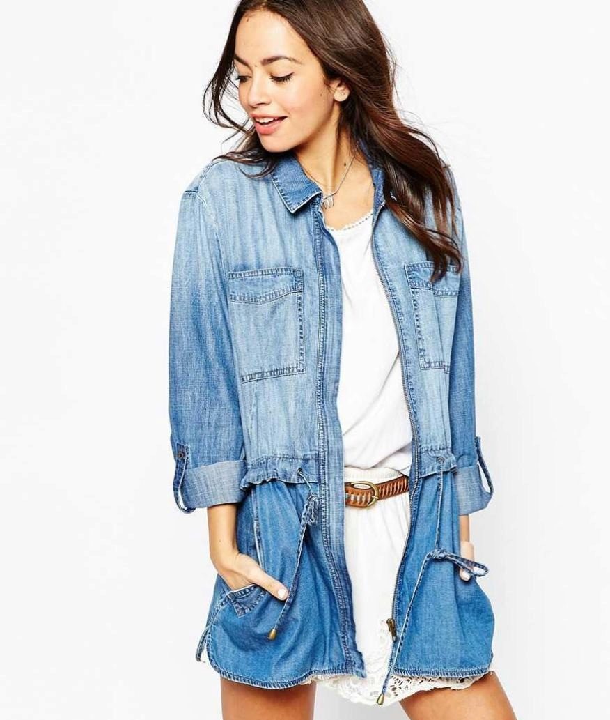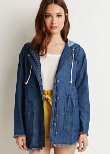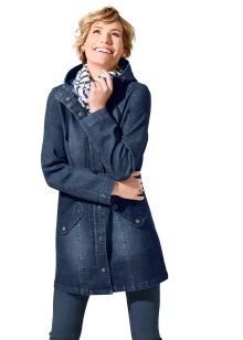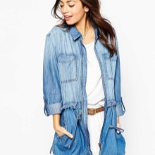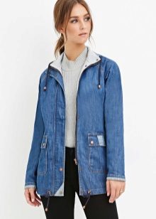 Denim parka can be successfully combined with a variety of things, you just need to show imagination and have a sense of style. You can create a successful image by combining it with jeans (just don’t choose them in exactly the same tone as your jacket), jumpsuit, sweater or turtleneck. From shoes in this case, wear sneakers or shoes with a flat sole. Under the summer model fit short shorts or skirt.