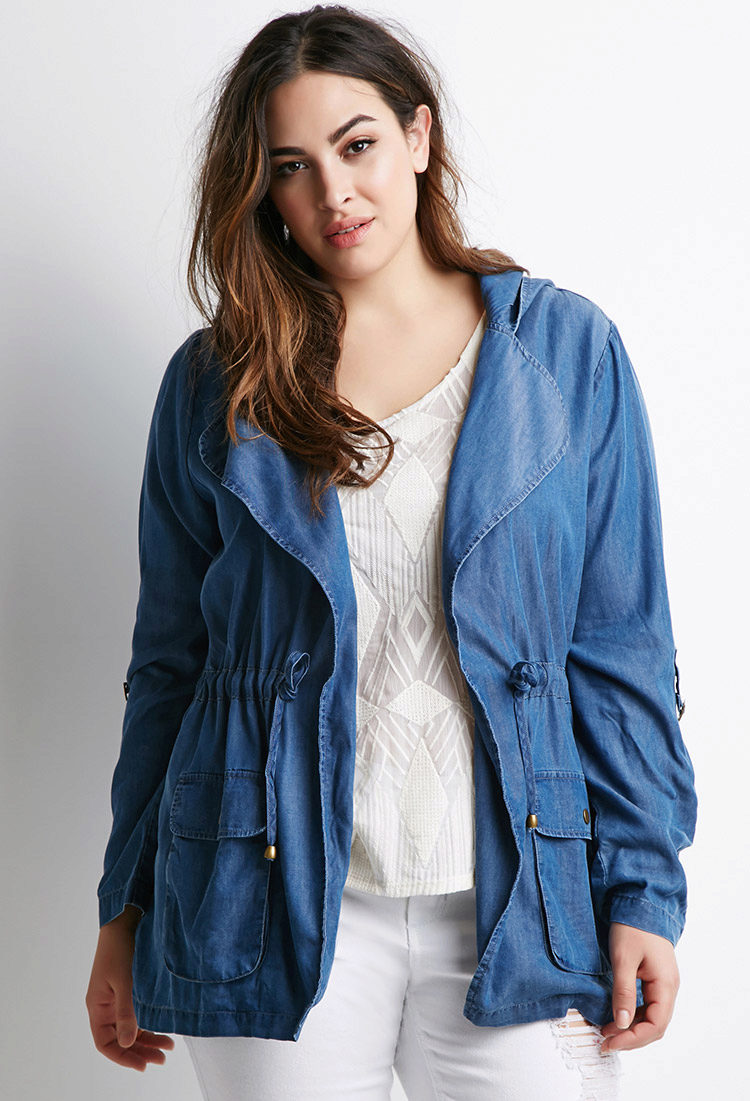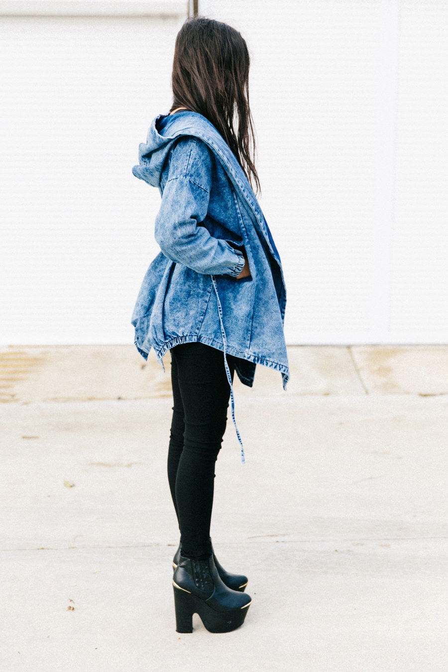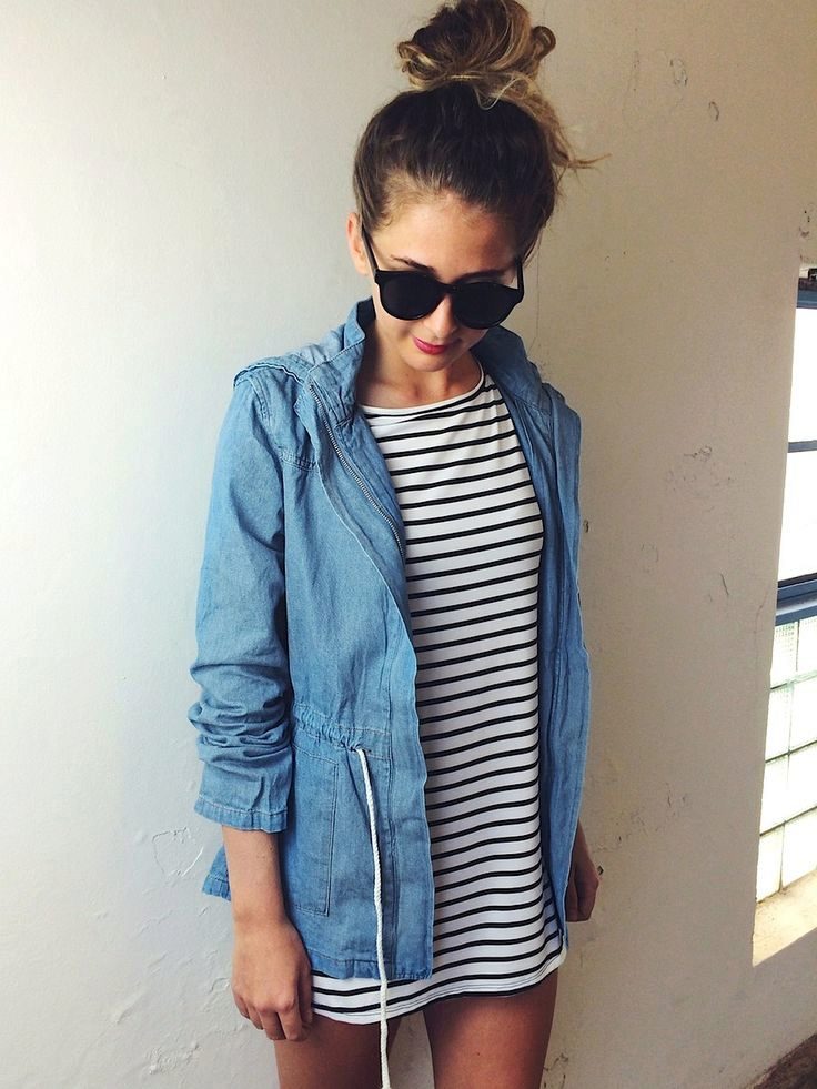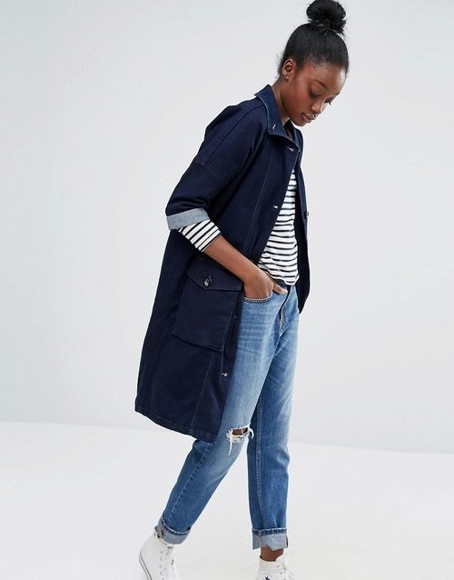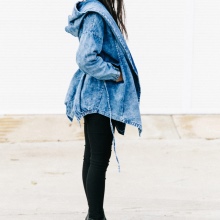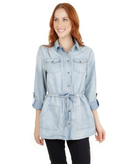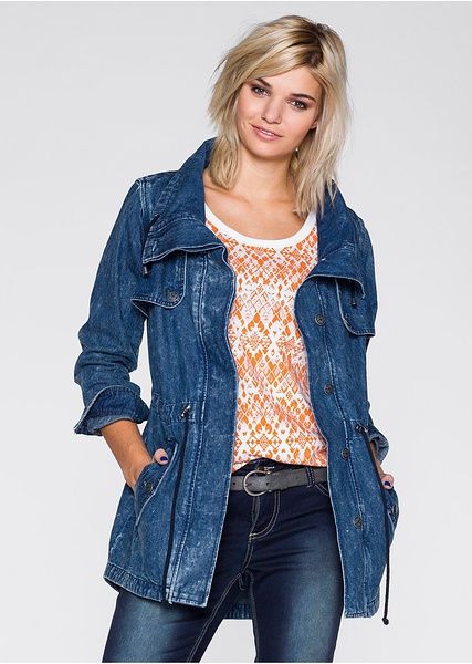 Denim parka can be successfully combined with a variety of things, you just need to show imagination and have a sense of style. You can create a successful image by combining it with jeans (just don’t choose them in exactly the same tone as your jacket), jumpsuit, sweater or turtleneck. From shoes in this case, wear sneakers or shoes with a flat sole. Under the summer model fit short shorts or skirt.