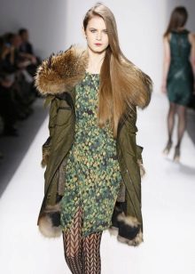 Glamorous short version of the parks will be in harmony with the boots on a wide heel. Organically complement the image of a scarf with a small pattern.