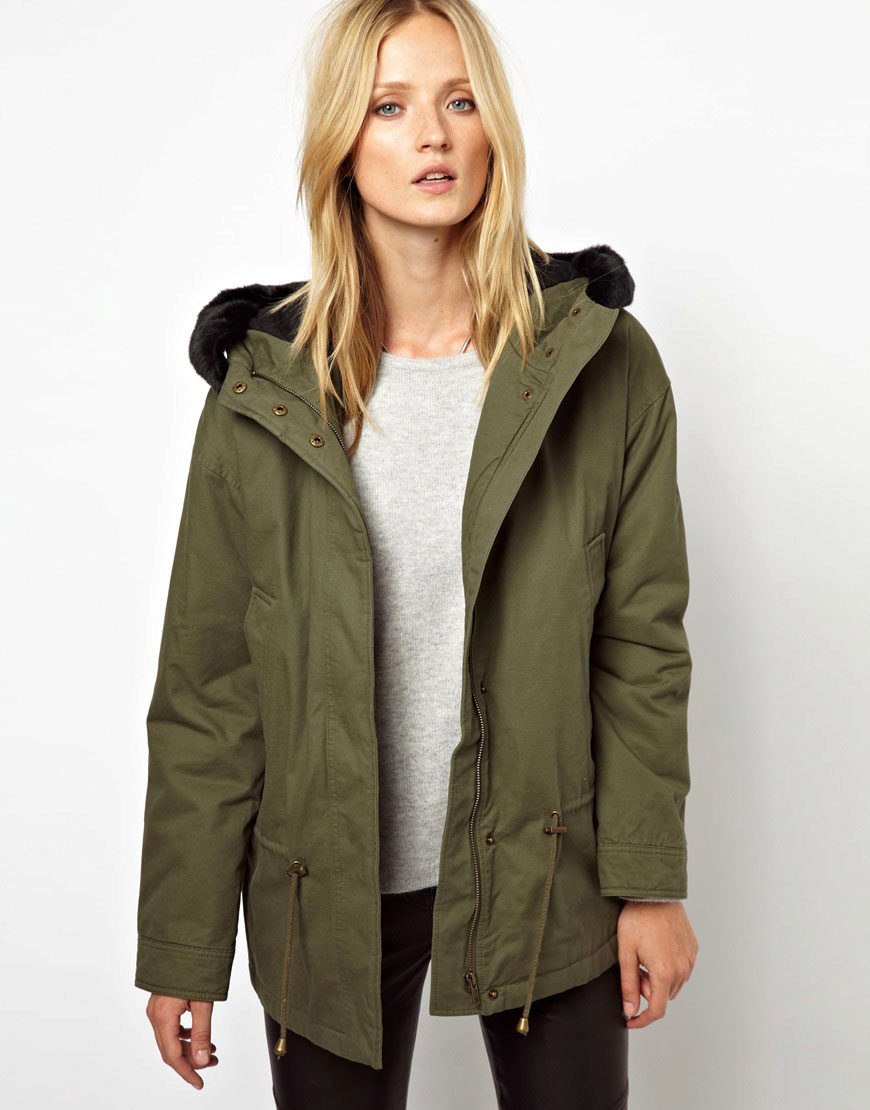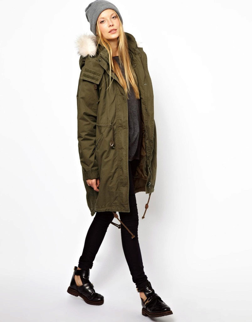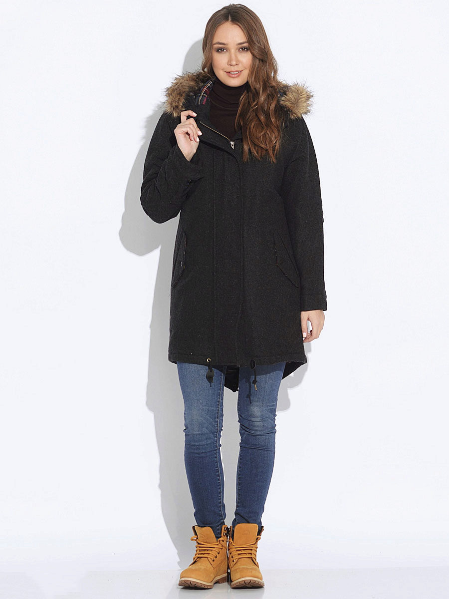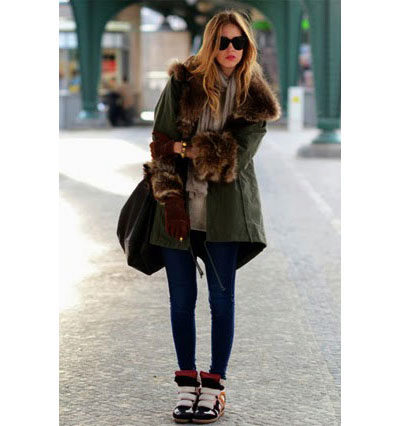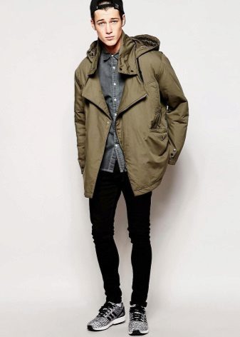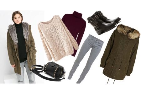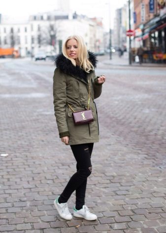 In addition, this parka looks great with narrow jeans, high boots without a heel and in general with a sporty style.