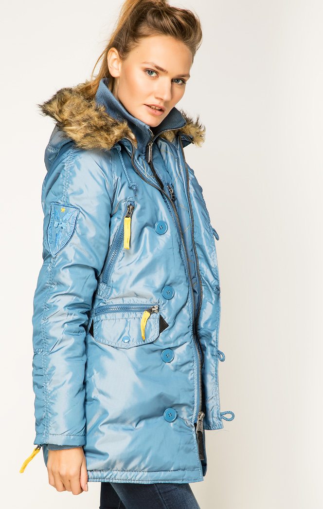 Parka is a practical piece of clothing that is used in casual or sporty style. A blue parka allows you to make the most ordinary everyday suit more elegant, bright and light. This is facilitated by a wide range of shades of blue: forget-me-not, azure, turquoise, aquamarine, blue-gray, pale blue, deep blue, etc.