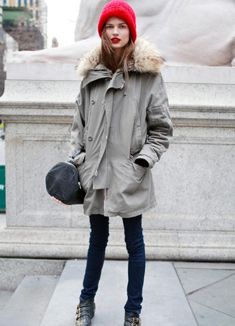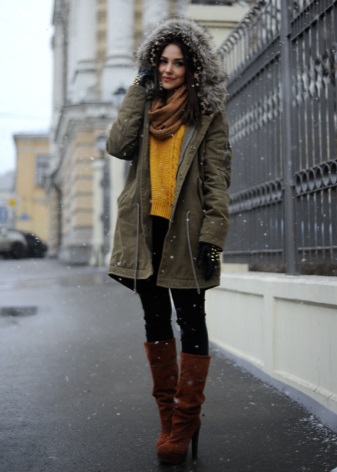 The park is considered a universal thing. In winter, it can be a good alternative to heavy and massive down jackets, and will be combined with knitted sets of scarves, mittens and hats.