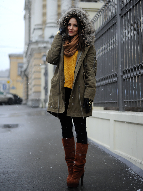 - One of the trends remains multi-layered and, by the way, it fits in perfectly with the women's park. Leggings or tight tights, dress, cardigan and massive knee-high boots will help create a trendy look.