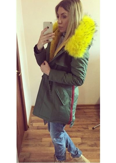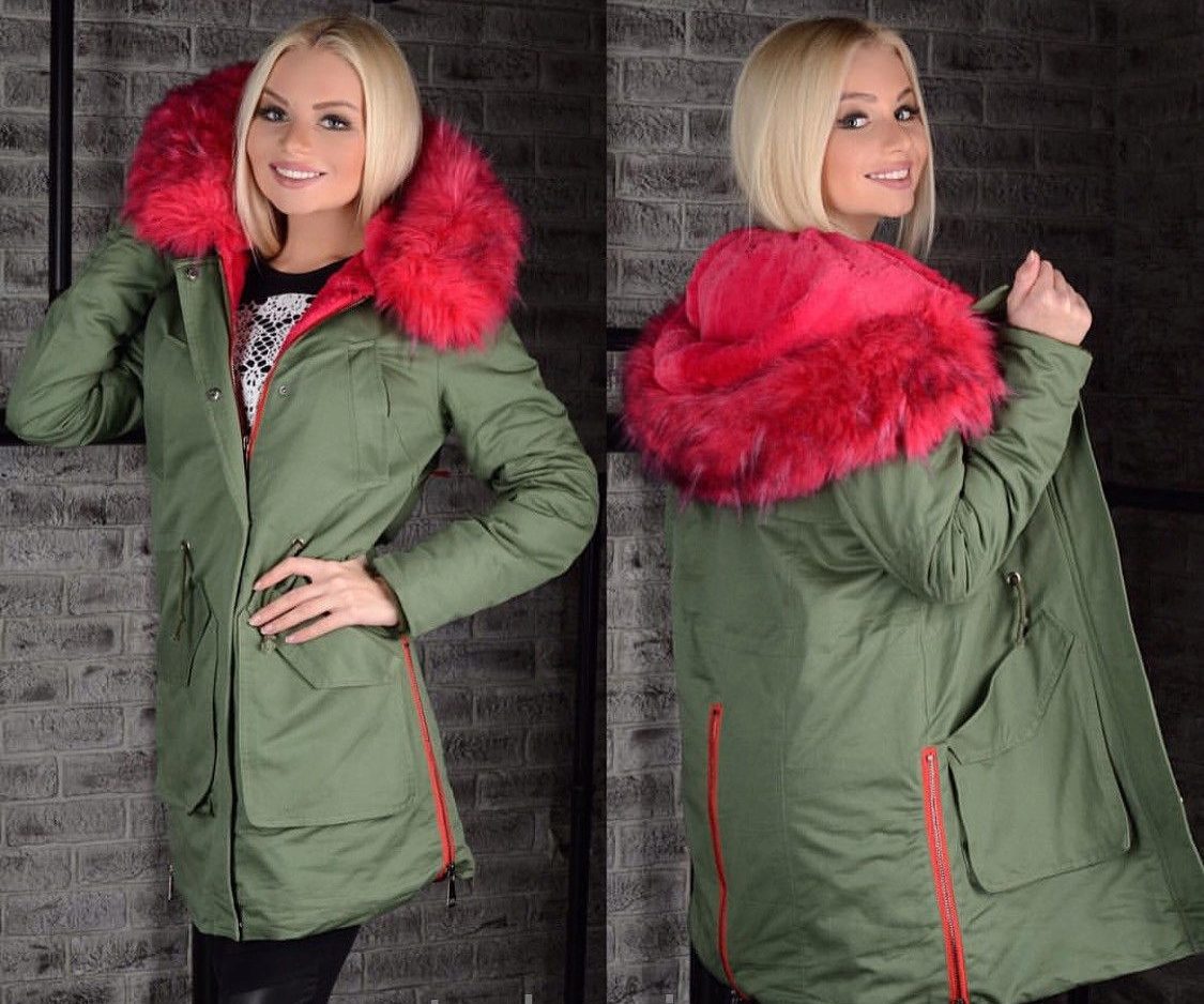 A parka with fur of this color is a great option for modern girls who are not afraid to combine bright puppet color with military khaki. Ideal for a set with a park of colors - black and dark blue.