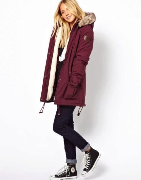 You can wear such bright and even positive clothes with anything - with jeans, with a classic dress, and with an evening dress. The parka will make the outfit more casual, casual, and sporty chic will slightly muffle an overly sexy or pretentious look.