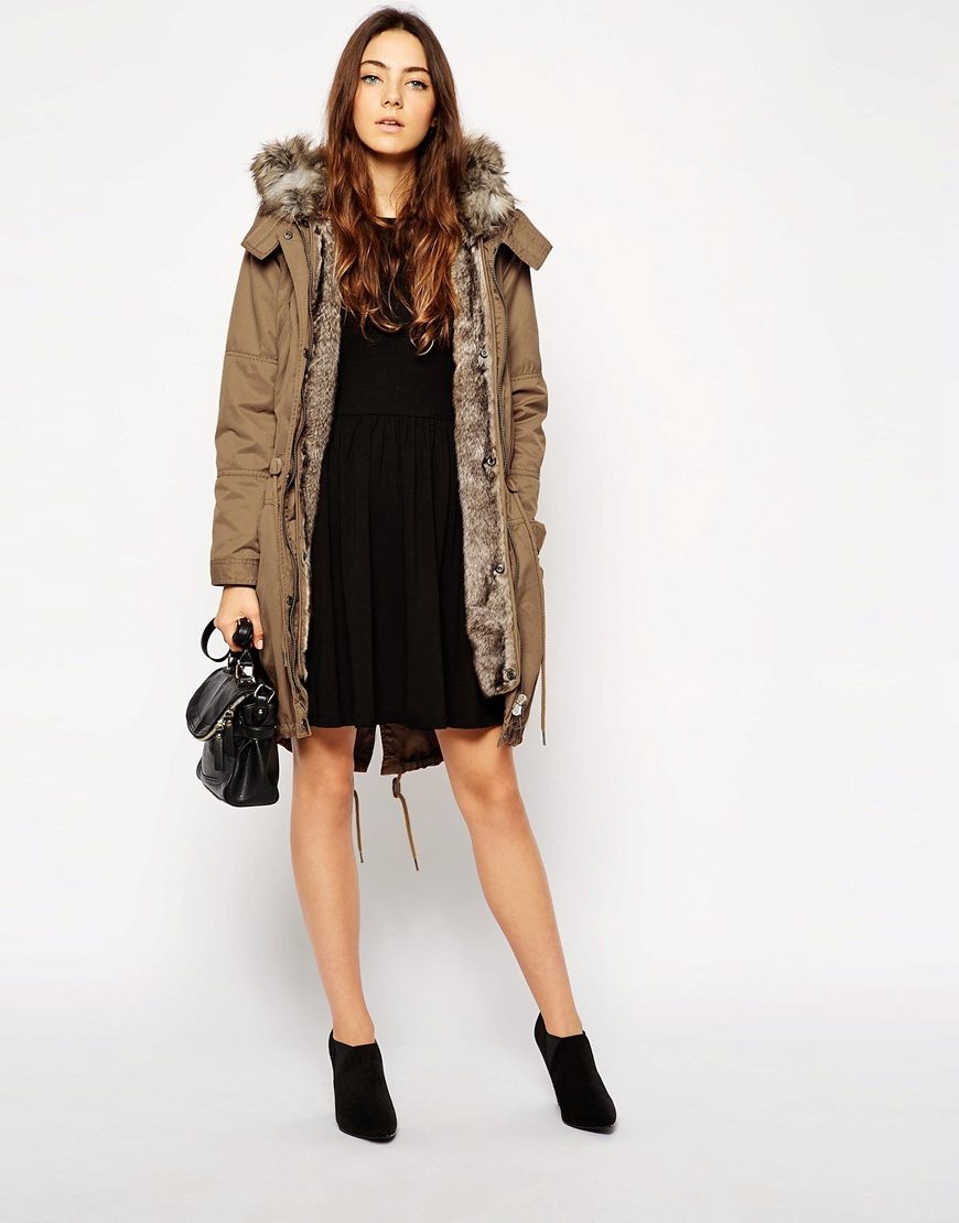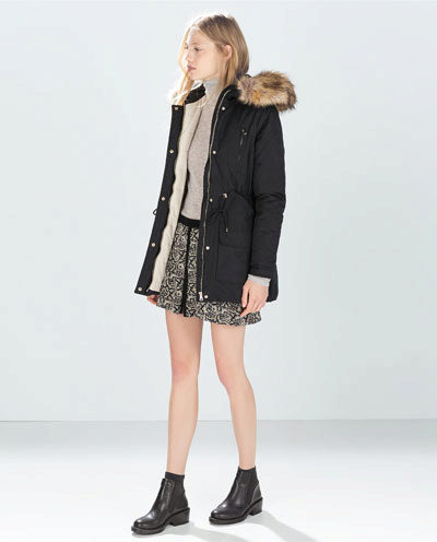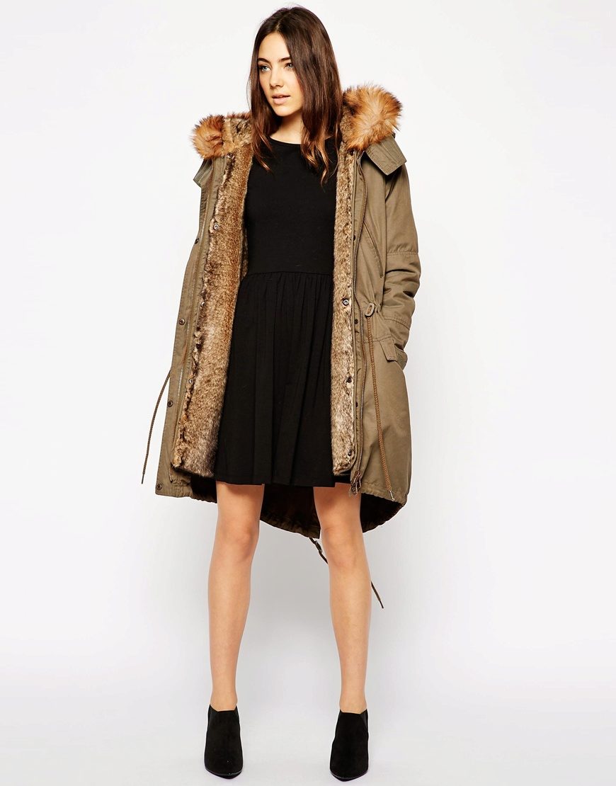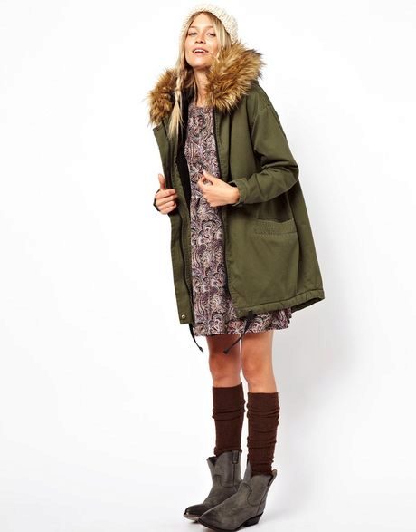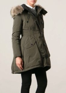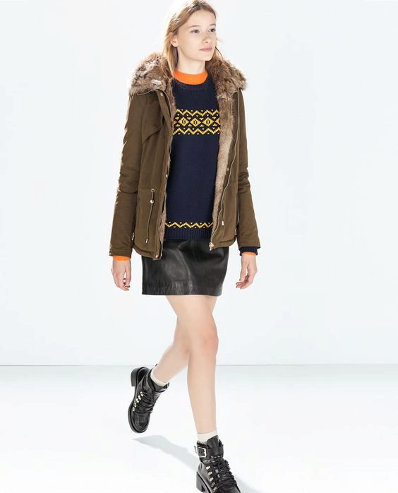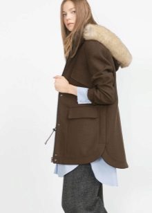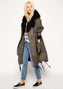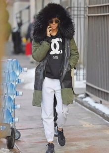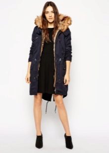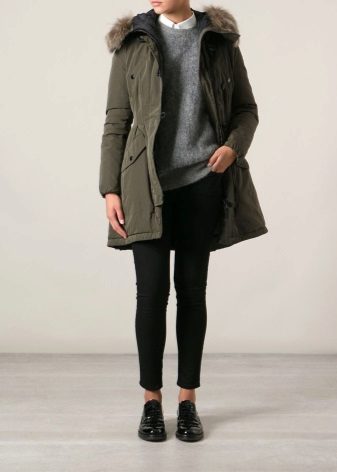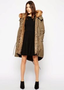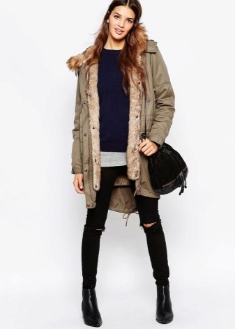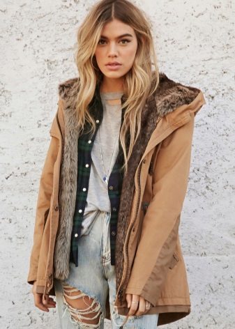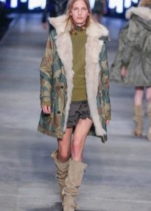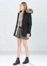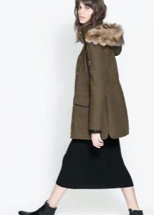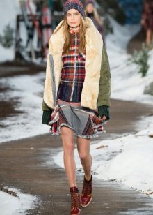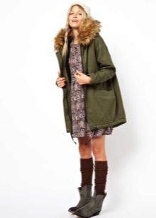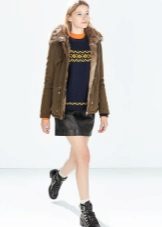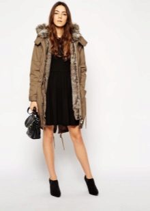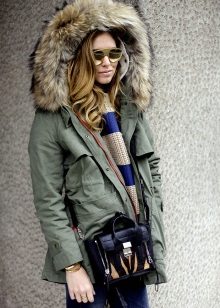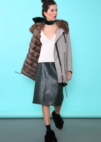 A park with fur will look great with a sheath dress or a shirt dress. This image is suitable for any occasion, even for work. The same applies to skirts in straight or slightly flared style. A pencil skirt or a cheeky mini will go well with a checkered shirt or sweatshirt.