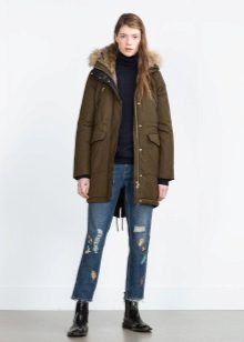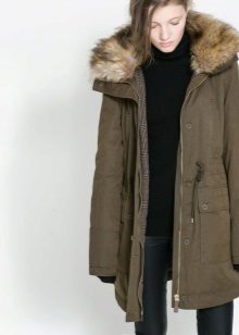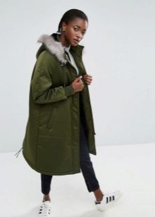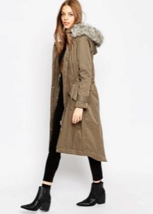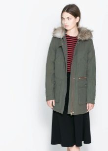 Models decorated with fur look especially gorgeous. This length is suitable for girls of any age and build. The optimal length of the elongated parks should end at the knee, may be slightly higher or lower.