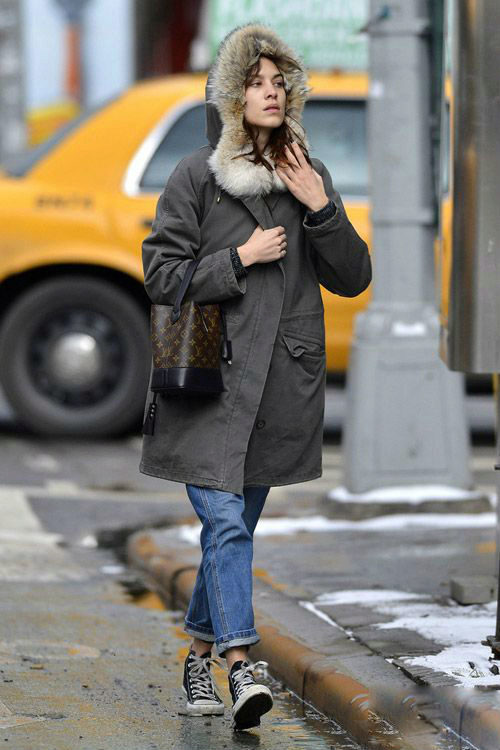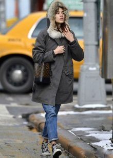 A win-win option - the park and boots-timberland. This combination does not go out of fashion for several seasons in a row and will appeal to girls who rely on practicality.