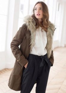We should also highlight the model with artificial fur. This is a stylish outerwear that is not inferior to a park with natural fur. This product is perfect for those who do not have a large amount of money, it will also appeal to animal advocates.