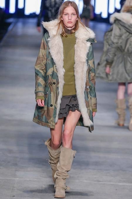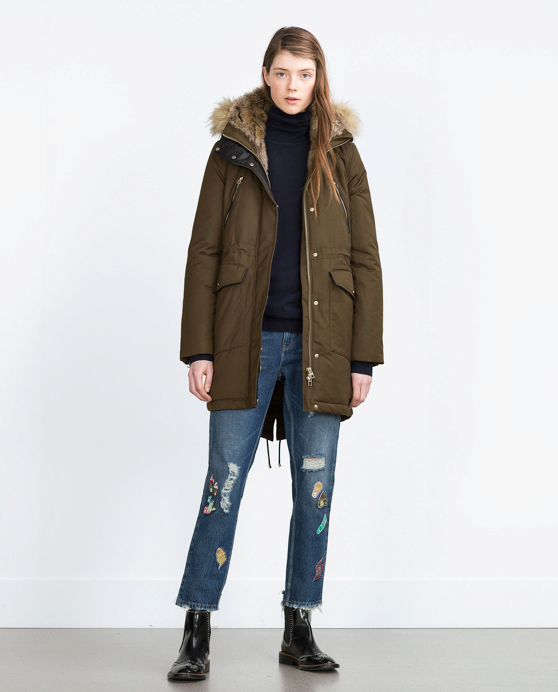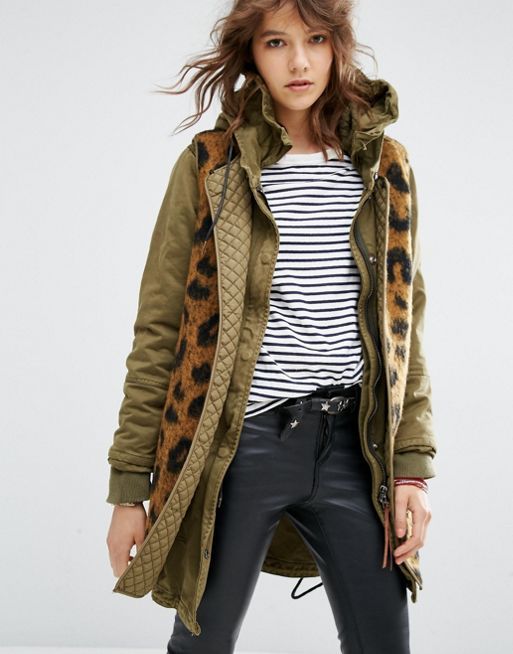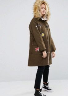 This season, military-style parks are still in fashion. Such models are characterized by a large number of patch pockets, a strict cut and "military" colors. The most popular colors are khaki, but also sick colors, sand, brown, dark green and camouflage print are also in demand.