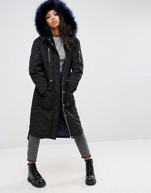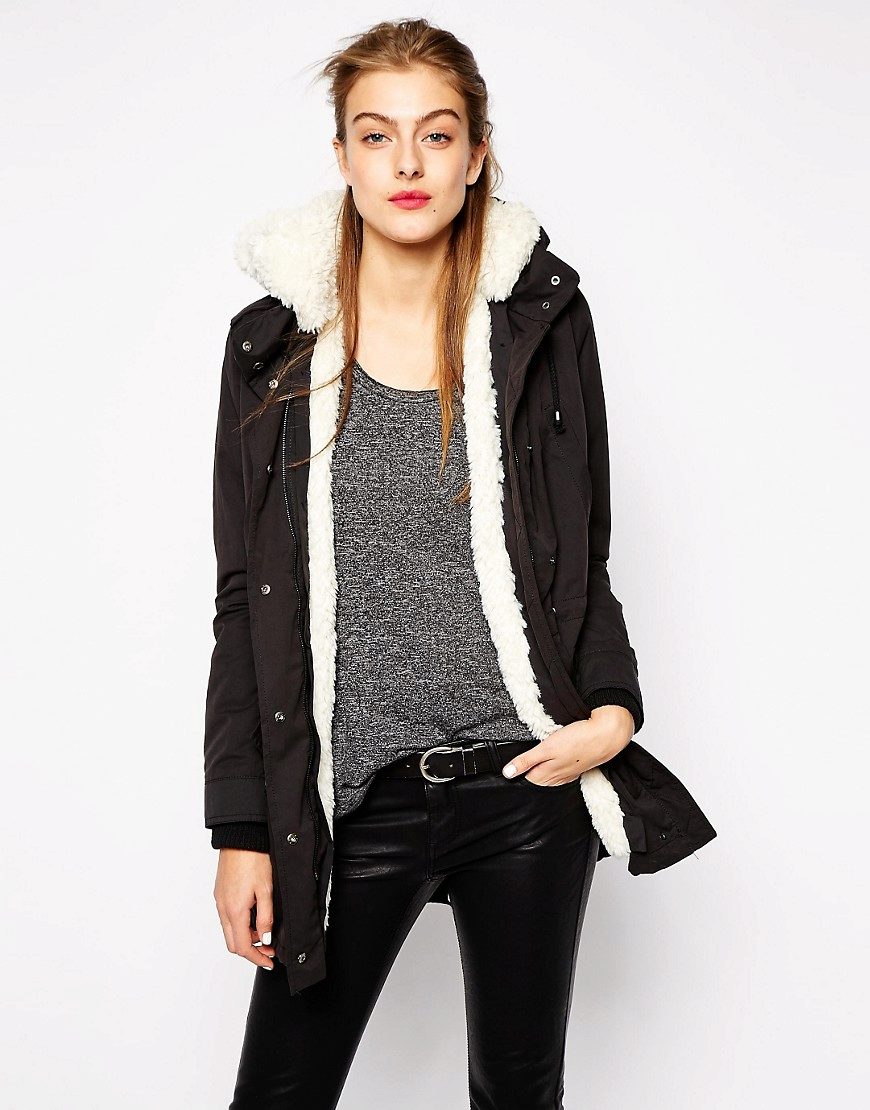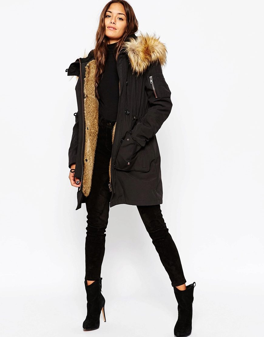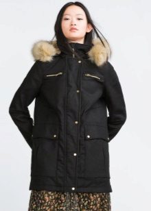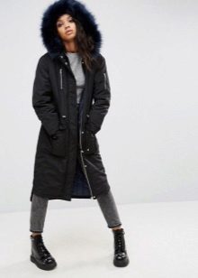 Black parka will appeal to the fair sex, who rely on practicality. It will be the perfect basis for casual look. Models with fur of a contrast color look especially attractive. For example, black with white fur, yellow or blue.