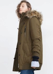 Short parks sporty cut light, warm and comfortable to wear. Length may be different: very short or reach mid-thigh. This is a fairly convenient and practical option for those who are not afraid to freeze. For example, he will like a car owner or active girls who are used to being on the move all the time.