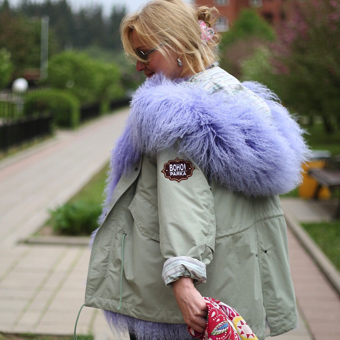 The blue of the park will be loved by romantic dreamy people. Models with white fur look especially good. Finishing this color gives the image a special tenderness and femininity.