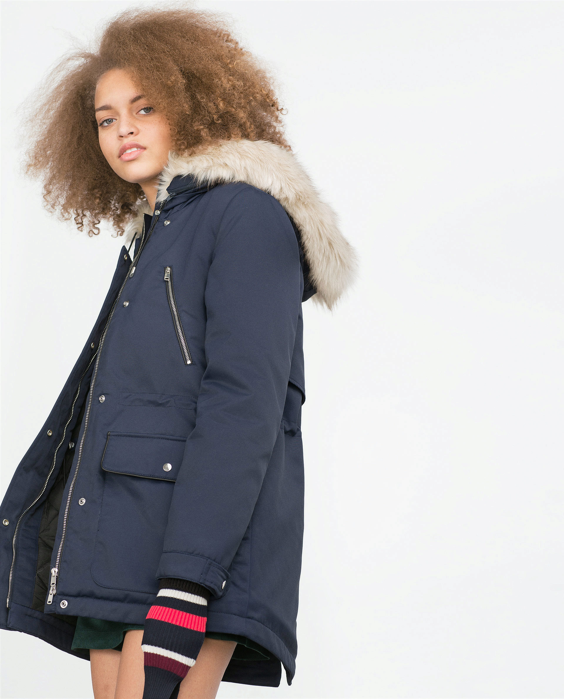 - with fur on the pockets.