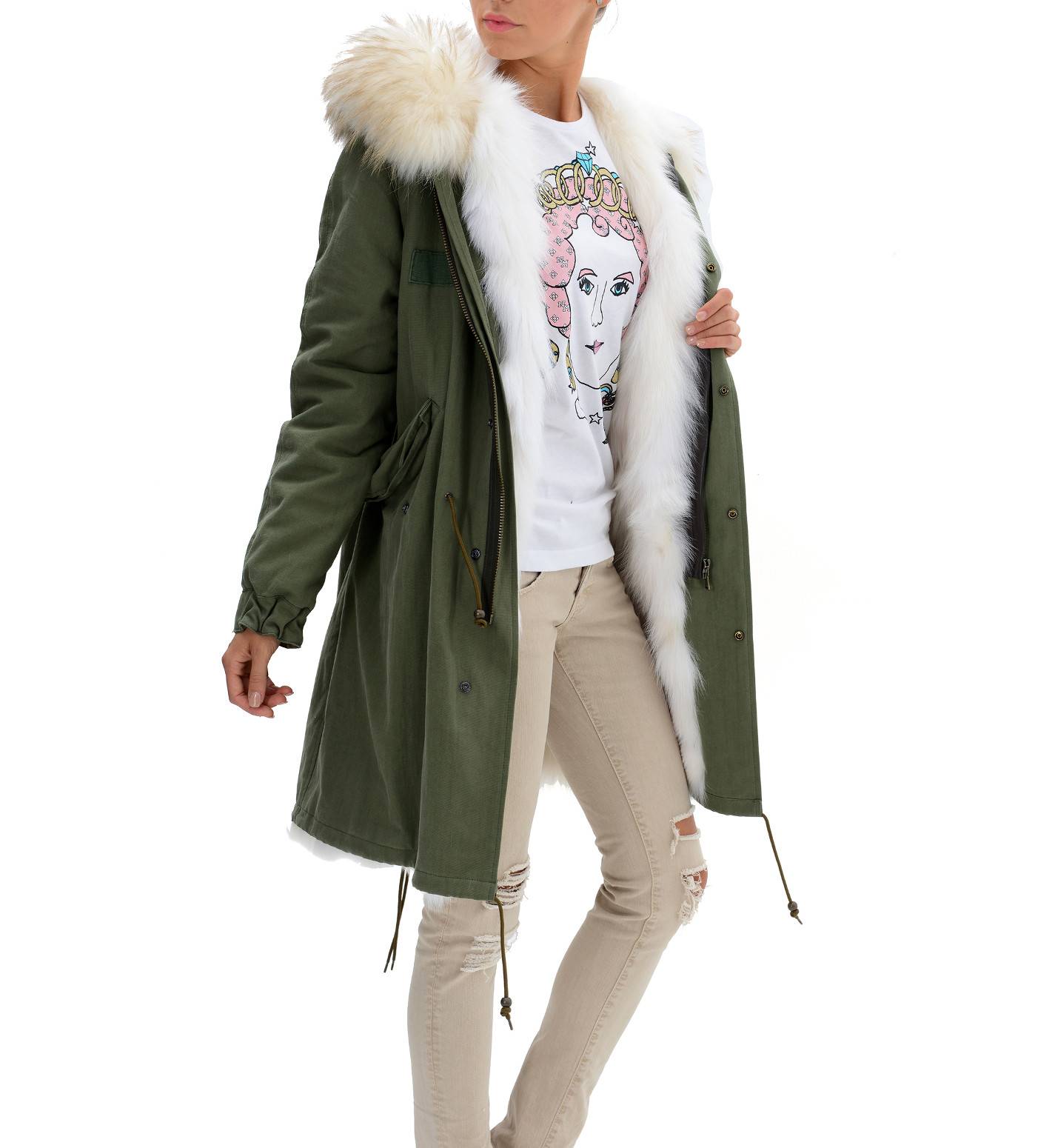- with fur on the hood;