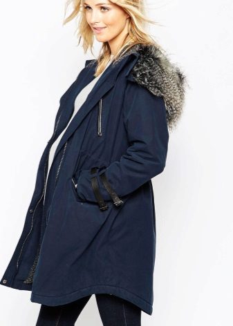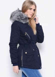 Warm parks of blue sporty type are different from the classic ones, except that they are shorter in length, here the length to mid-thigh is more common. If there is a hood, then it is usually comfortable, deep, often insulated with fur. There may be a transforming hood, which is folded with a vertical zipper into two halves and turns into a wide collar.