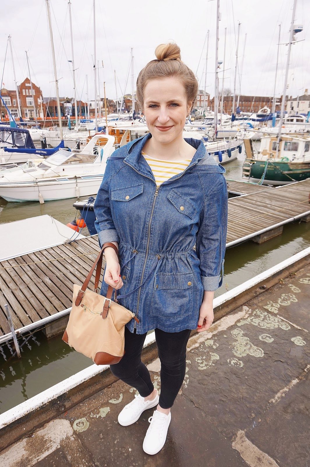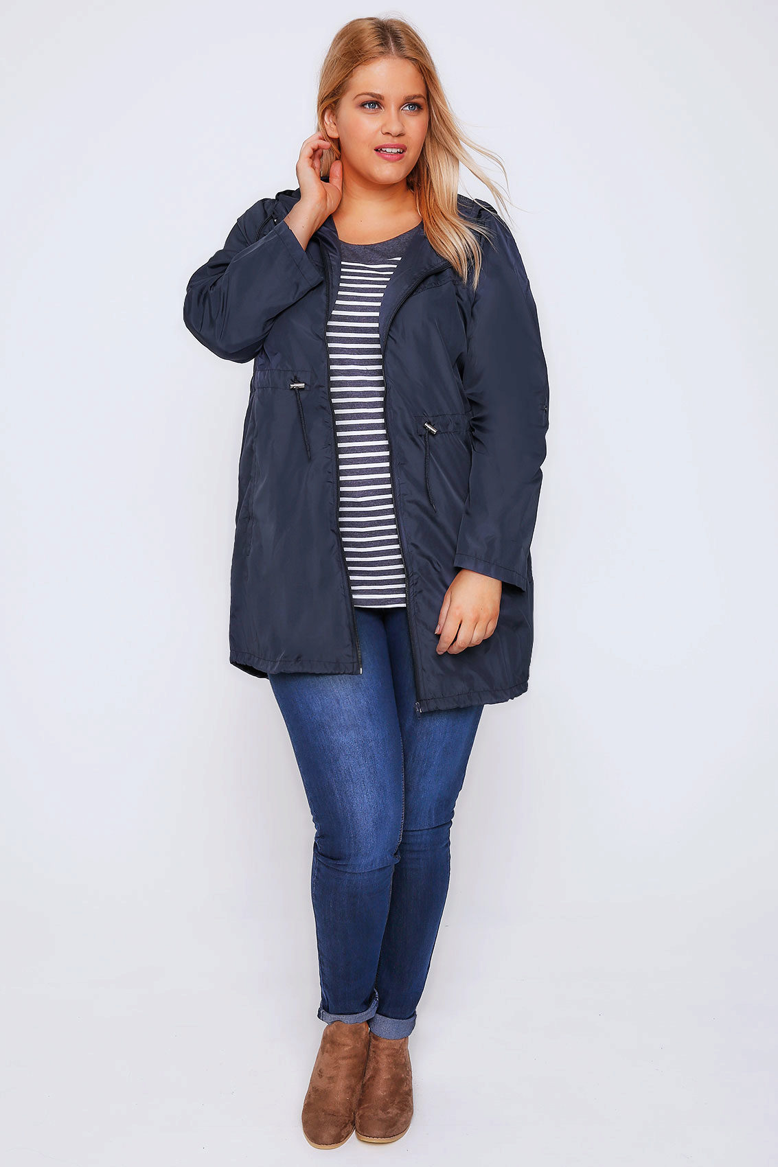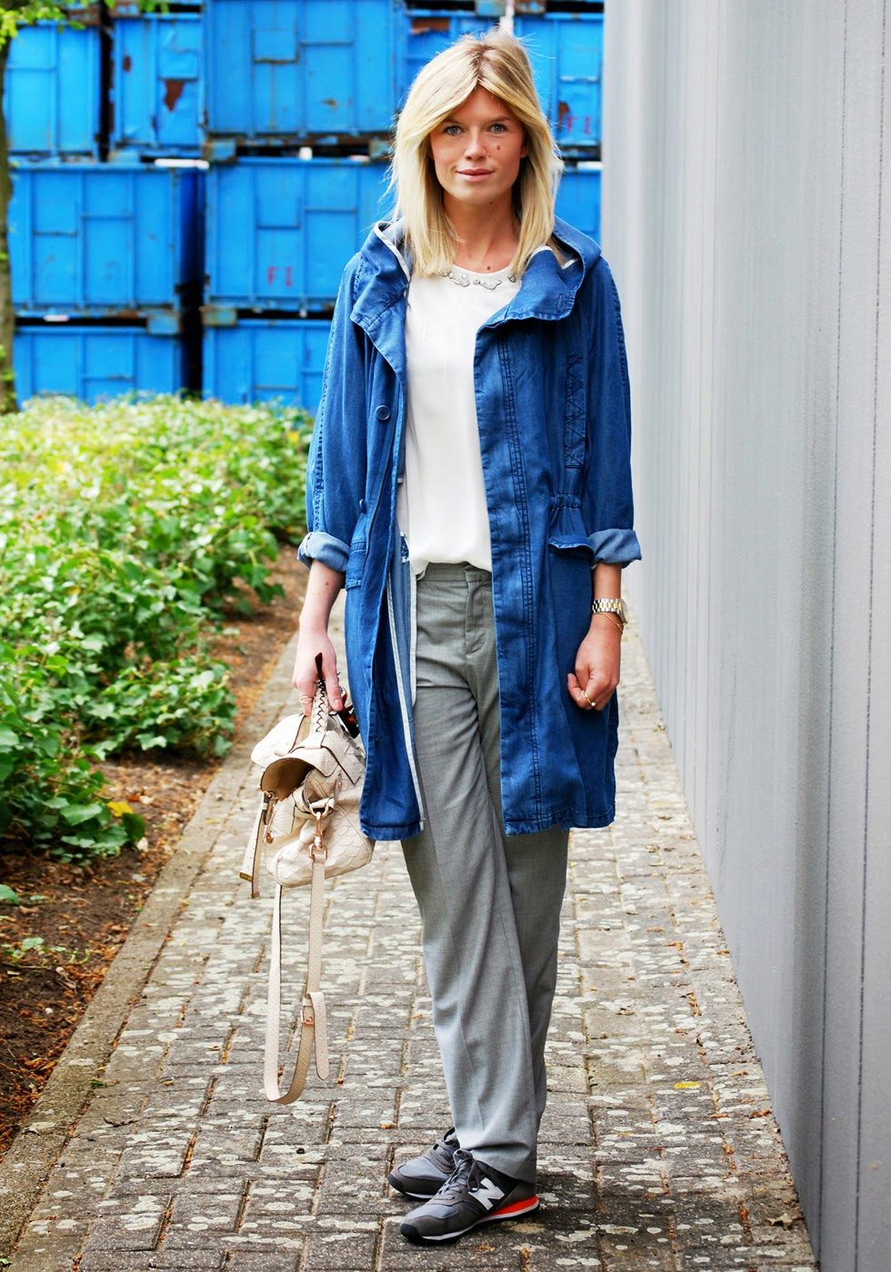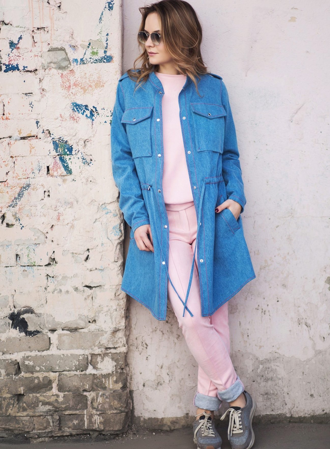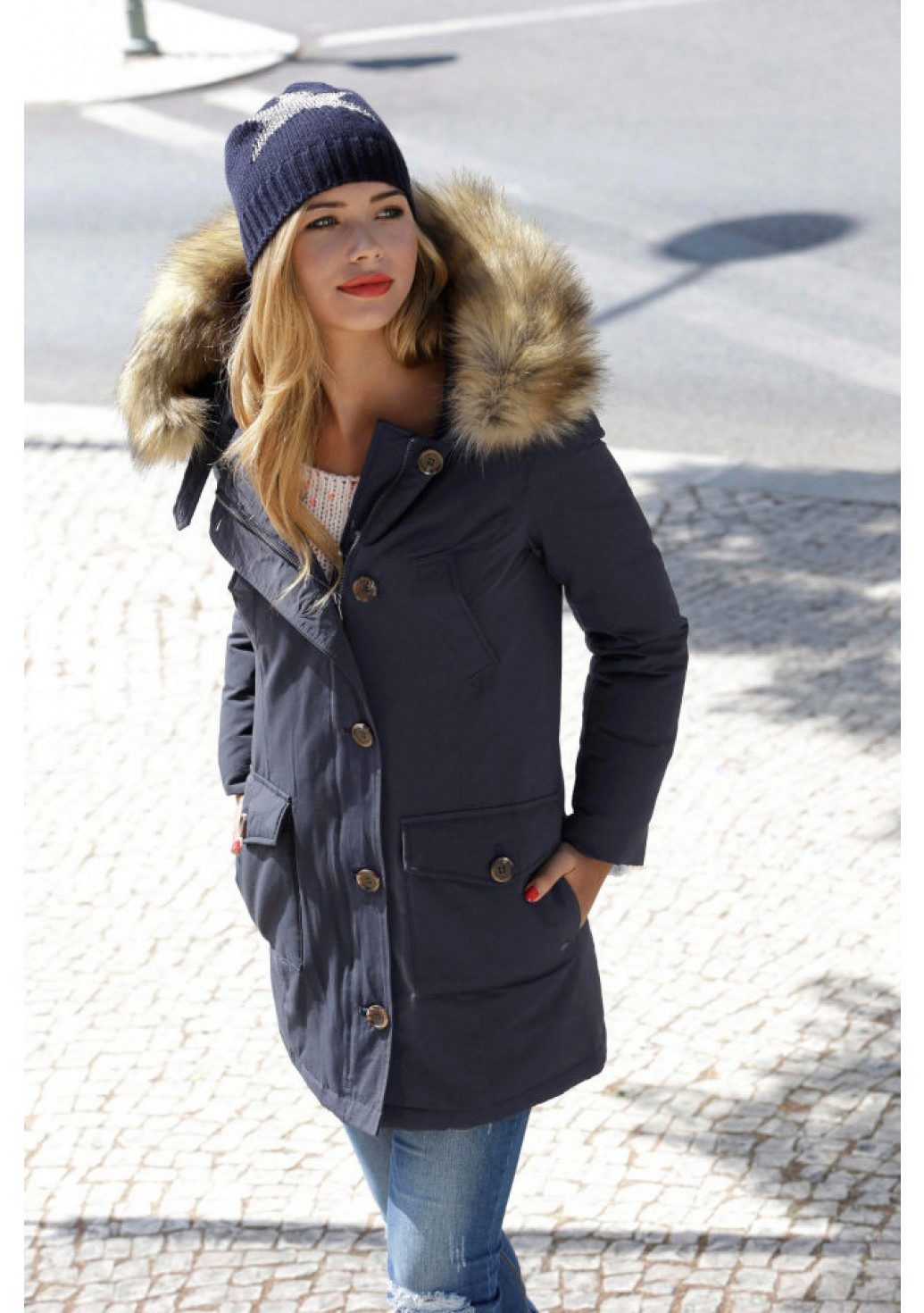 Blue skinny trousers in gray or jeans look great with a blue parka. Upstairs you can wear a loose cut sweater.As shoes for the fall and spring, we recommend shoes and low shoes without shoes, oxfords or brogues made from natural materials. Tight turtlenecks and heeled ankle boots look good with glamorous parks.