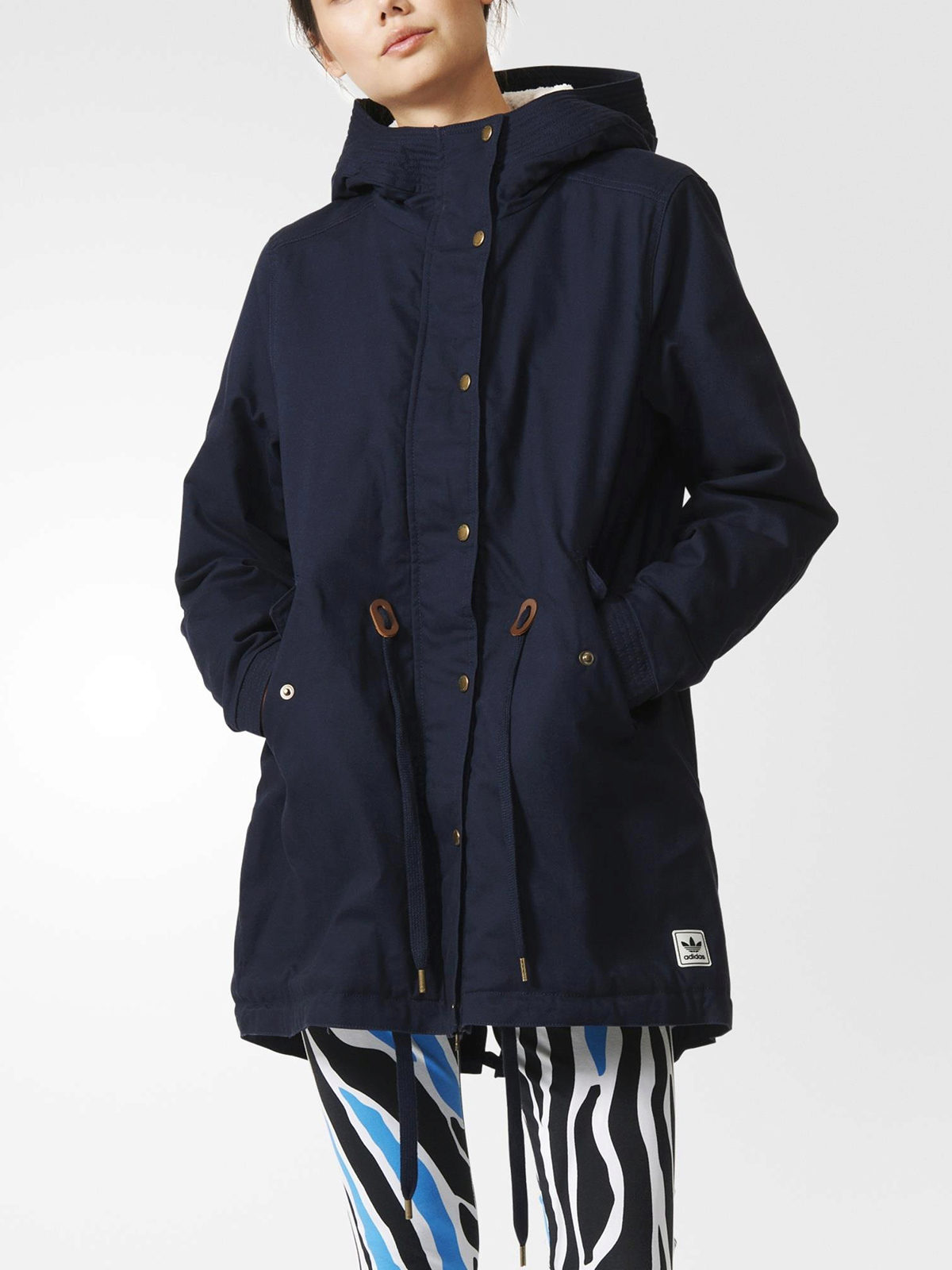 The classic colors of modern parks are khaki, sand, green, black, cherry, and, of course, blue. The traditional style implies knee length or slightly higher, a hood and many additional elements, such as pockets, buttons, zippers and drawstrings.