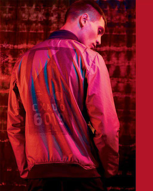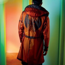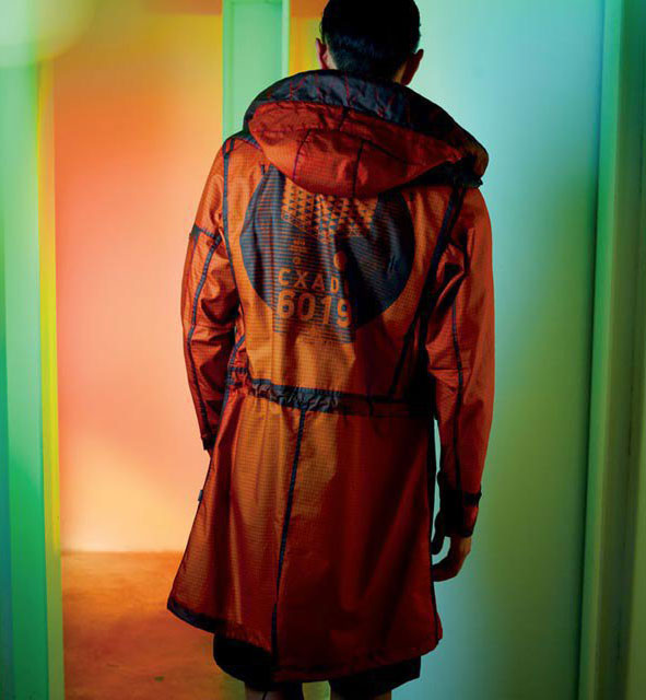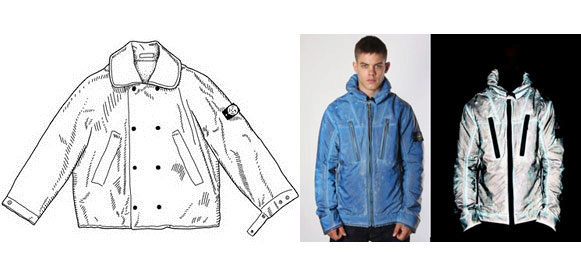 - Reflective Jacket. The result of the next experiment. Material - Japanese design - dotted with the smallest glass elements. This is an improved variation of the previous model, capable not only of reflecting light, but of capturing even its weakest signals. The jacket is also water repellent.