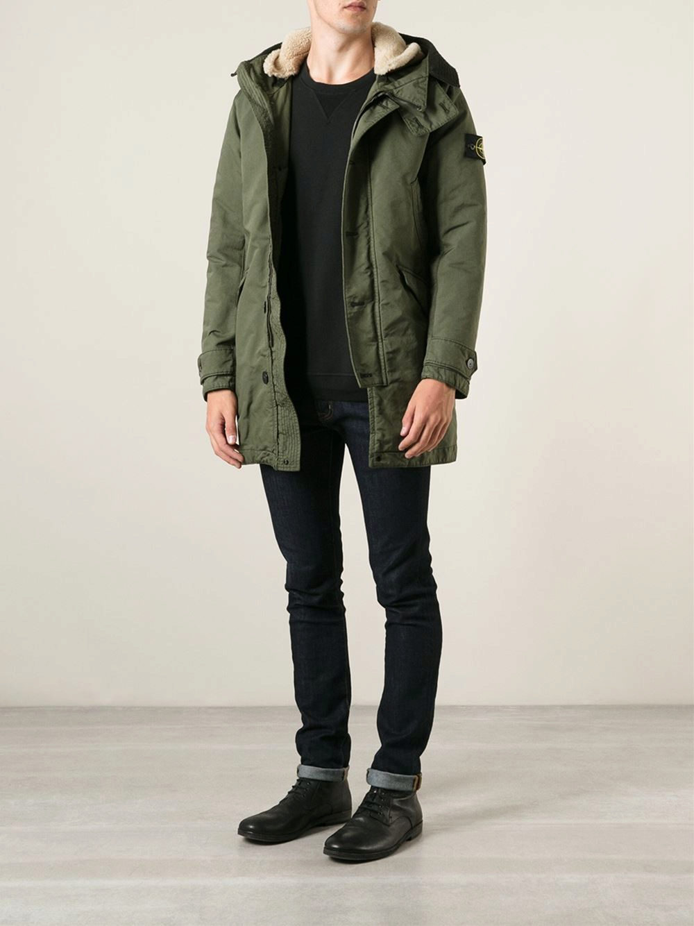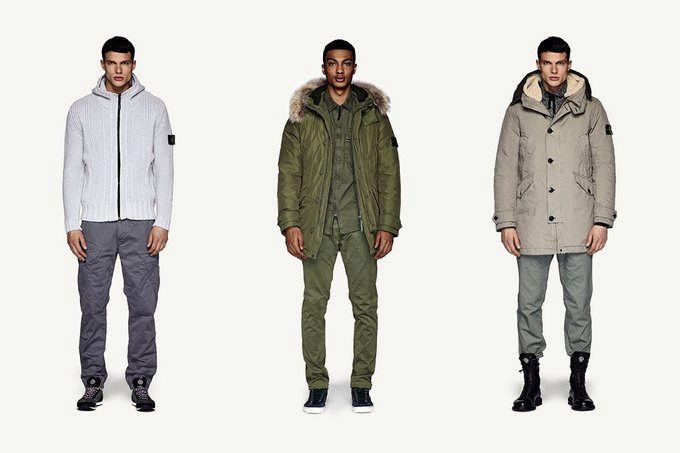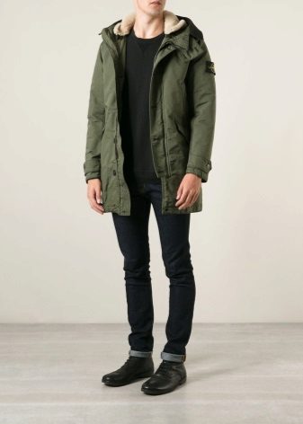 The recognition of Stone Island men's parks was obtained when they acquired the forms that are today considered to be classic for this type of outerwear. The cut became extremely elongated, the hood was invariably accompanied by a fur trim. All parks also began to be equipped with a number of mandatory elements: removable parts, a high collar and additional internal cuffs, drawstring at the lace in the area of the hood and the lower edge of the hem (and sometimes in the waist).