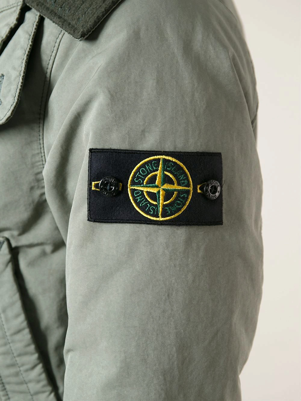 The uniqueness and exclusivity of things from this Italian brand is underlined by its emblem.The wind rose, depicted on the patch, which is always placed on the left sleeve in the forearm area, is the very stroke that allows distinguishing Stone Island parks from any others. Most often, this "compass" is removable - it is fastened to its rightful place with the help of two buttons. But in some models there is a attached emblem.